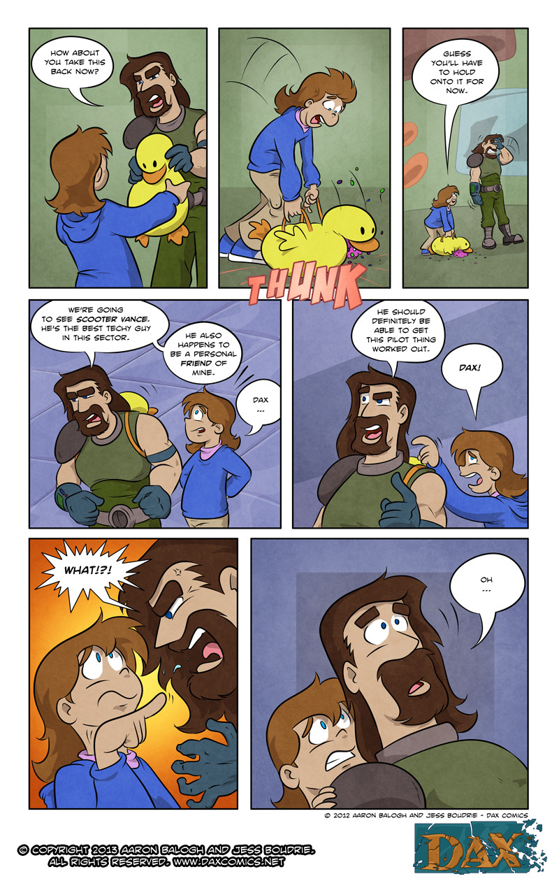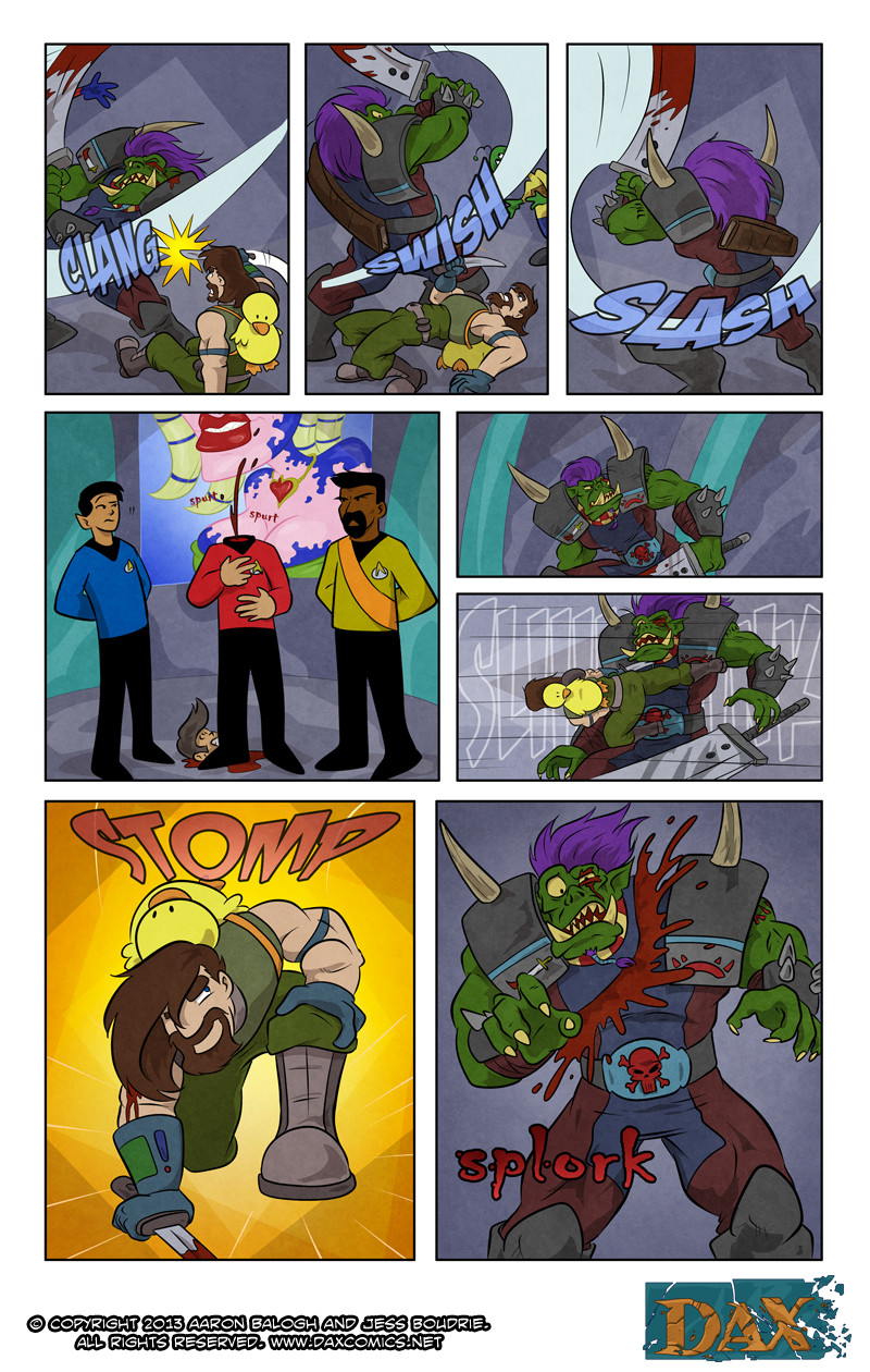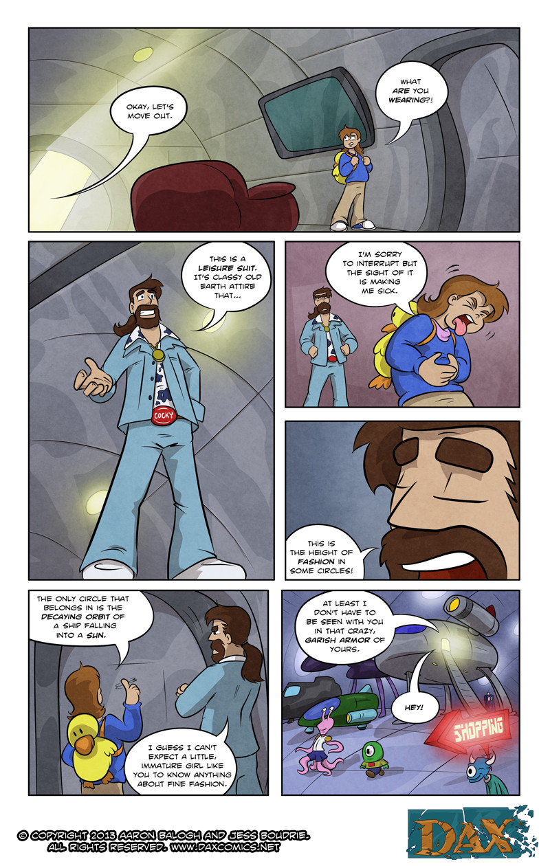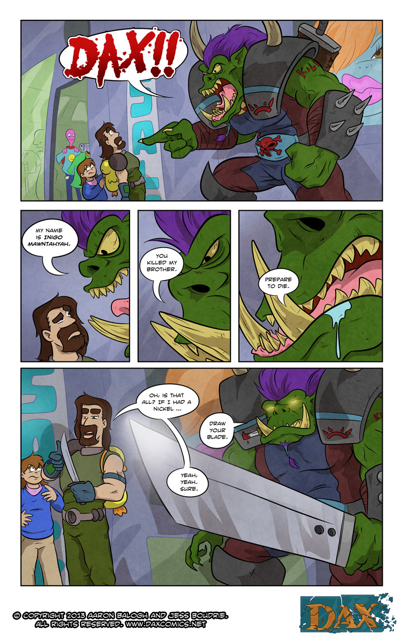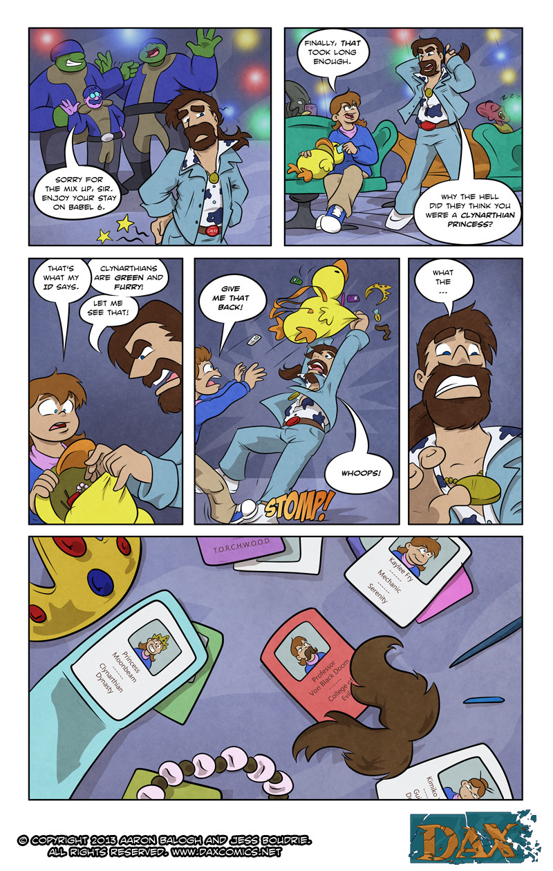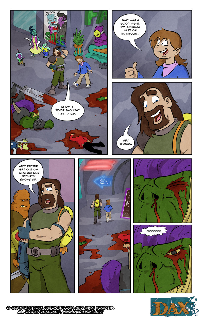 In order to get rid of the Girl, Dax braves the horrors of a local space mall, a fight with a Space Orc and the Intergalactic Space Authority.