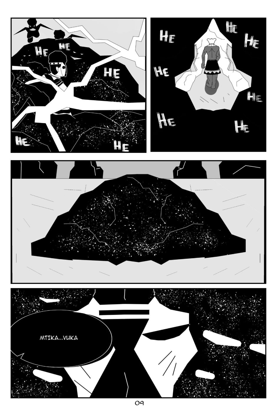 Limited only to 22 pages and shades of black, white and grey, our students create poignant yet fantastical representations of the young, African psyche.