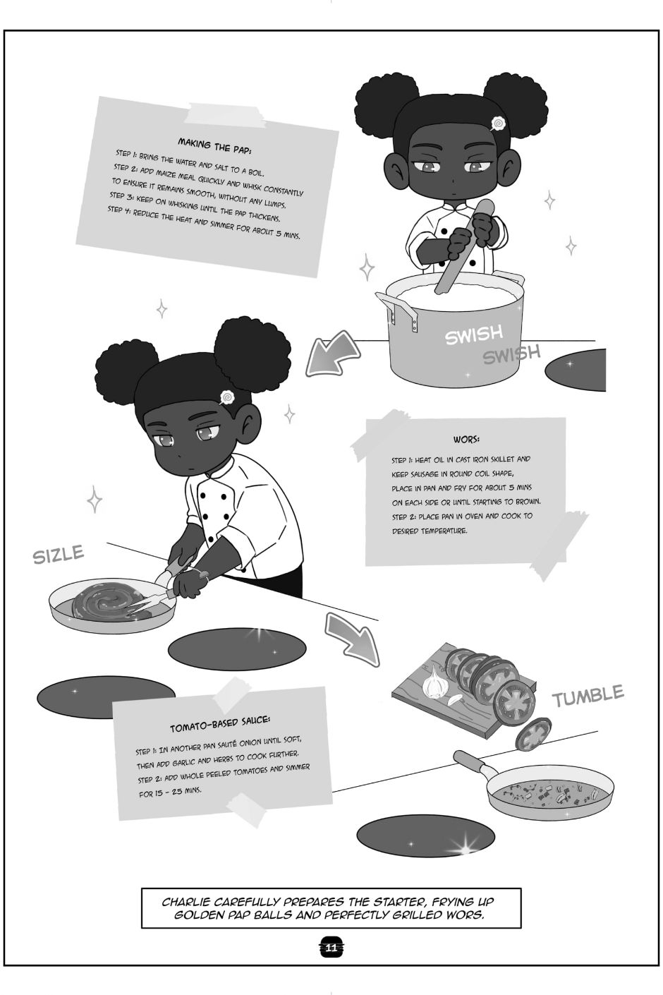 Limited only to 22 pages and shades of black, white and grey, our students create poignant yet fantastical representations of the young, African psyche.