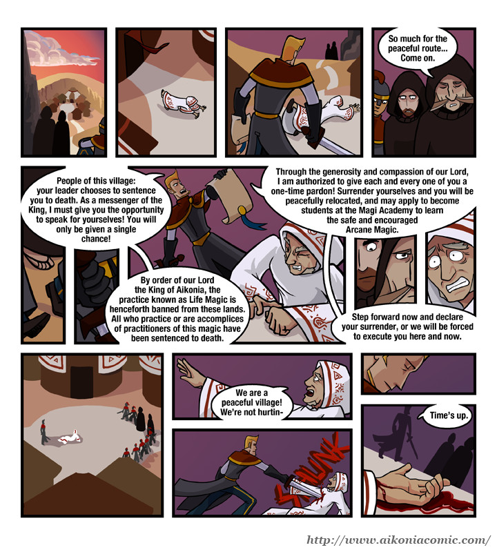 The story of Aikonia takes place in a world made up of several planes of existence. Magicka (the world of magic) and Aikonia (the world of man) are two of those planes. There are also two types of magic in Aikonia: Life magic, which is powered by the life energy produced by living beings, and Magicka magic, which is powered by an energy produced when the atmosphere of Magicka reacts with that of Aikonia.
