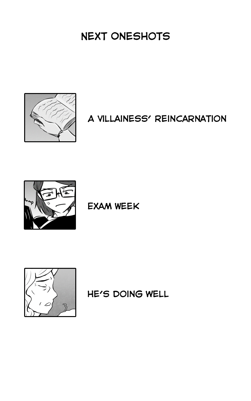 These are the next 3 oneshots I have ^^ I still have a poll on my next "longer" romance with a dash of angst oneshot on my webtoon profile but I will be closing it on the weekend. Do vote if you're interested :3