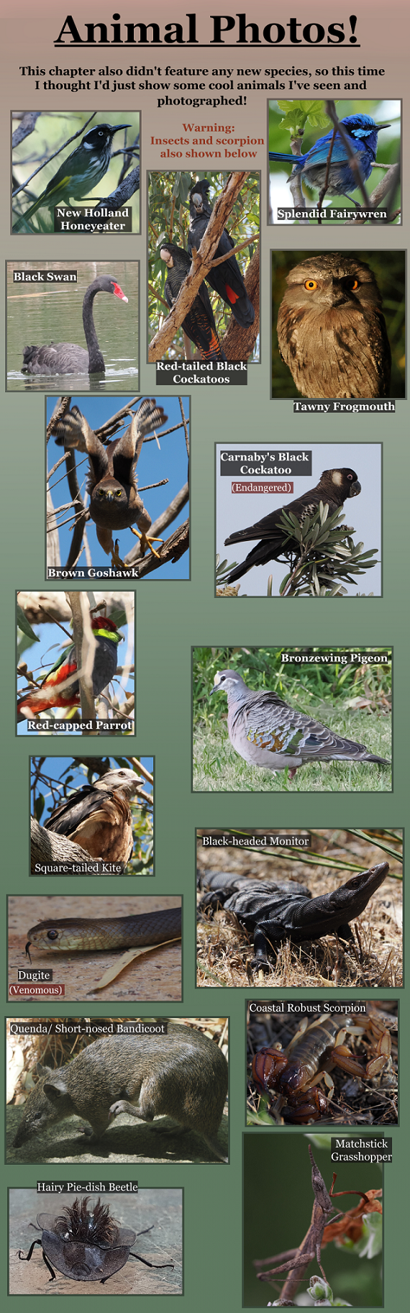 Many years after the extinction of humans, native species begin turning on those brought over by humans. Leading to major conflict between animal species, with unique abilities being used to wipe out or relocate species. Kea, a wallaby, is abruptly thrust directly into the conflict after meeting an excitable, pushy dingo. [Will aim to get updates out on the first/last day of every month!]
