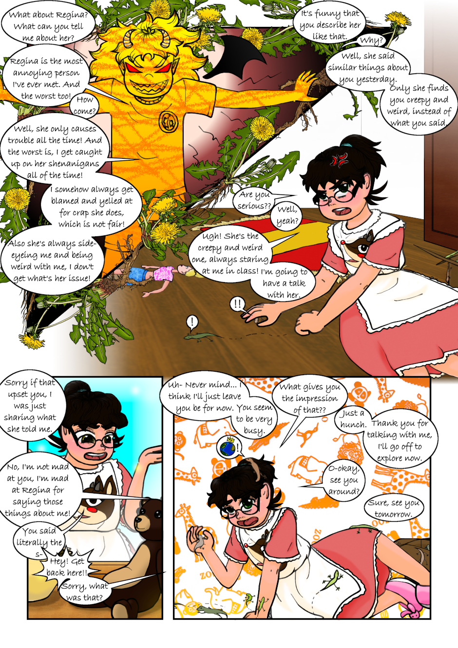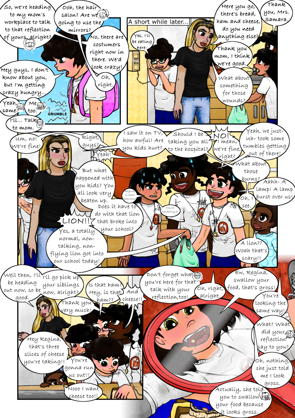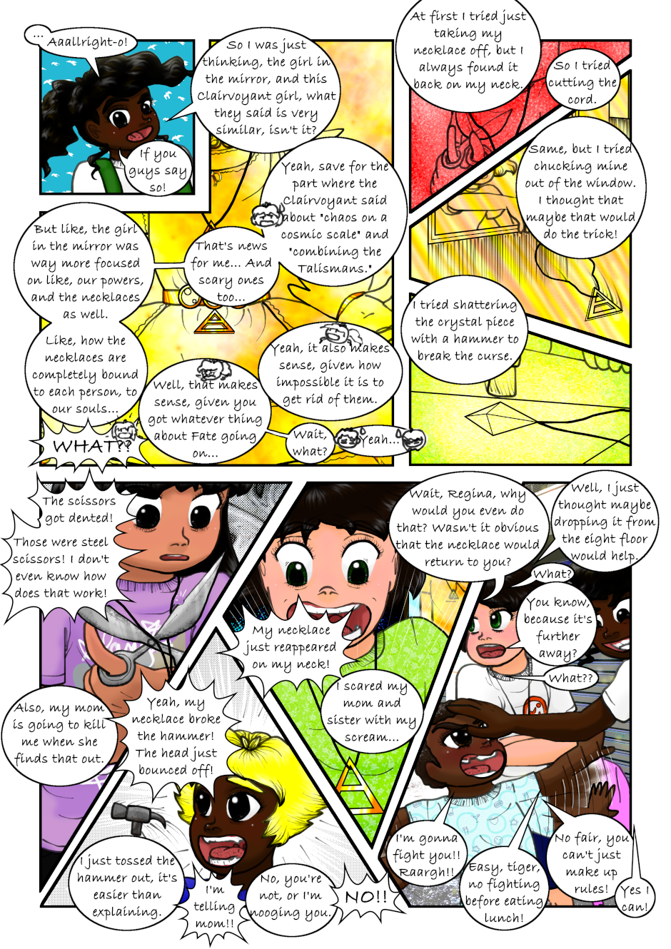 The Clairvoyant told Regina she has to seek the Air Necklace to guard it, and told her to find the Warriors. Regina accidentally found a magical necklace that made her and a couple of her classmates turn into magical girls. Also, a talking flying lion is after them. Not to mention Regina's reflection speaks to her now. What a mess, can anyone Regina, Mariana or Tondra what is going on?