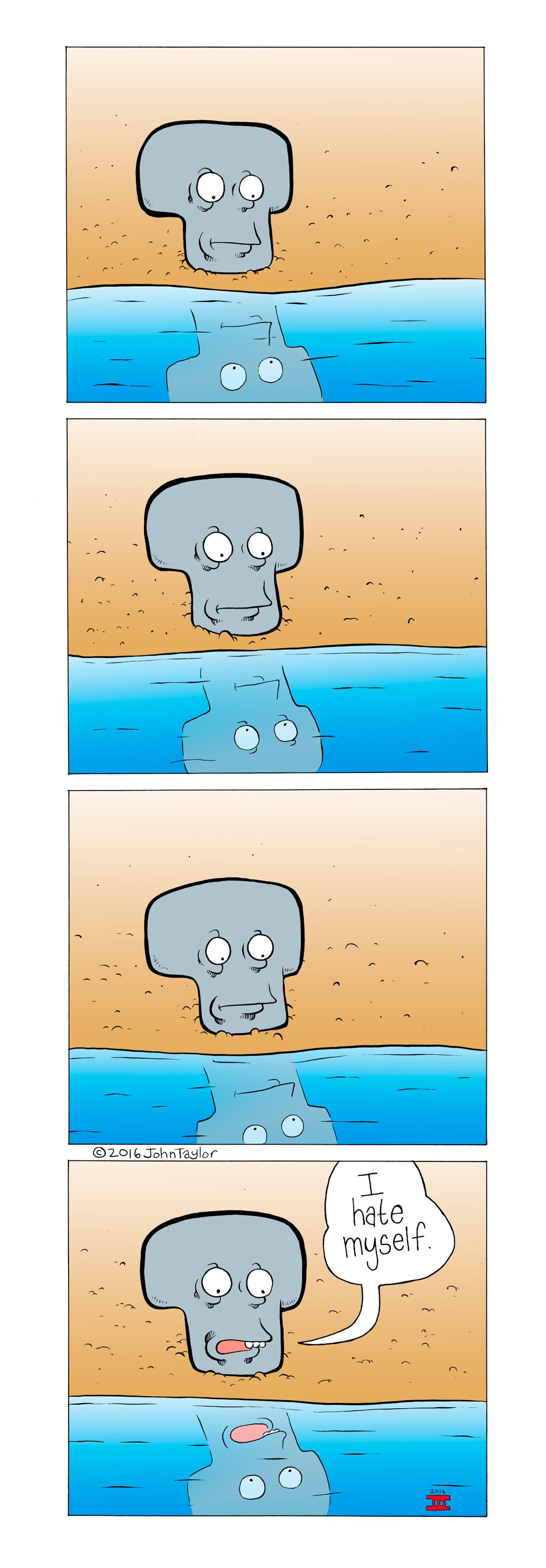 After staring longingly into his own reflection in a tranquil lake, this guy has come to a disturbing conclusion.