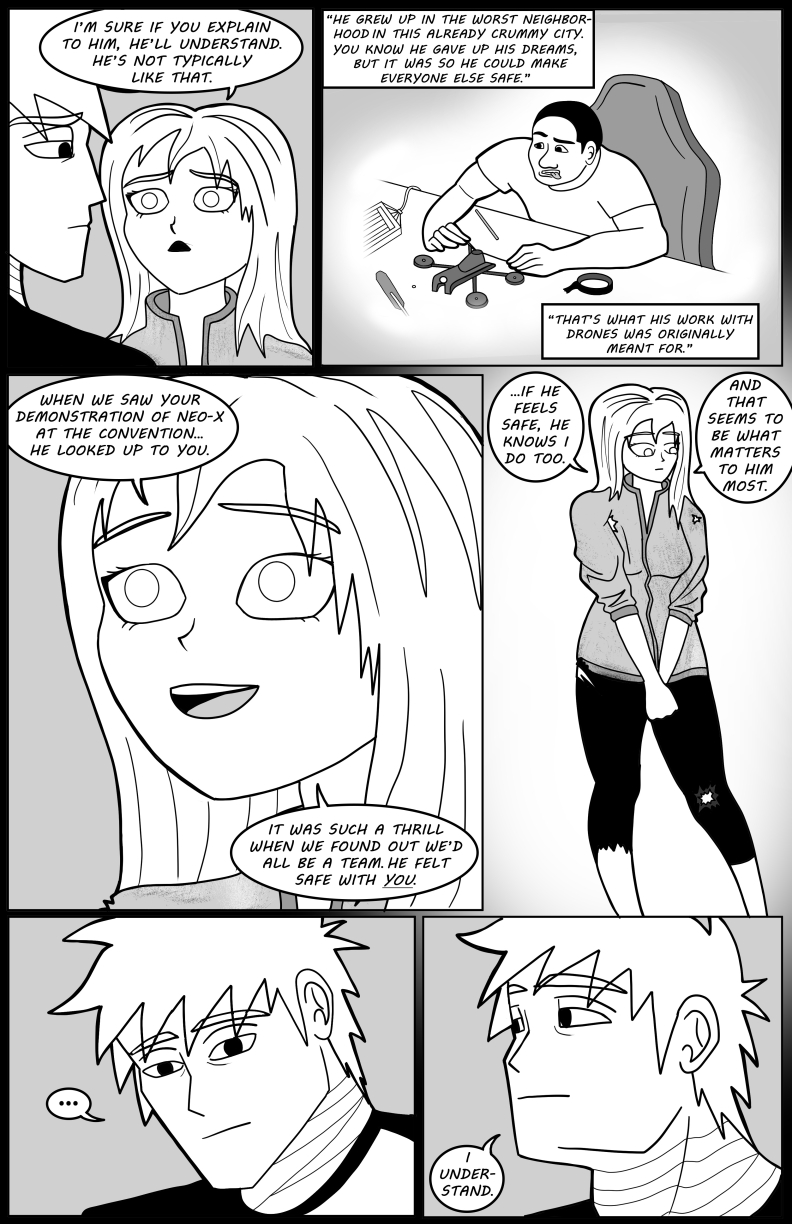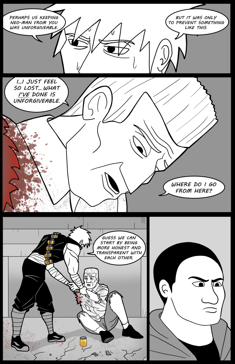 Keith's bond with his friend Lumina grows, but adds more for him to juggle in his already-complicated life: The Criminal Underworld is still active, the EMC begins to take new measures for their twisted cause, and his boss, Dr. Aldrich, is beginning to grow suspicious of Keith and his team! In order to find balance, Keith will have to merge the connections he's made both as a civilian and as Neo-Man - even if it means giving away his secret identity!