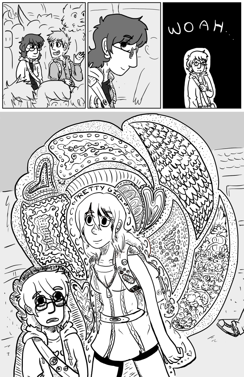 Our duo are finally at the comic convention. It's here that we meet our love interest. I assume. I mean with all the decoration I would assume as much.
