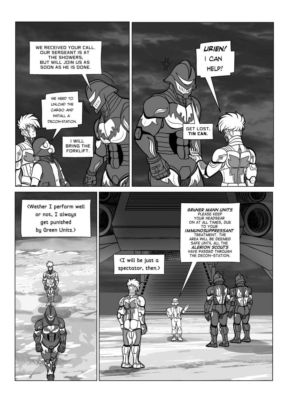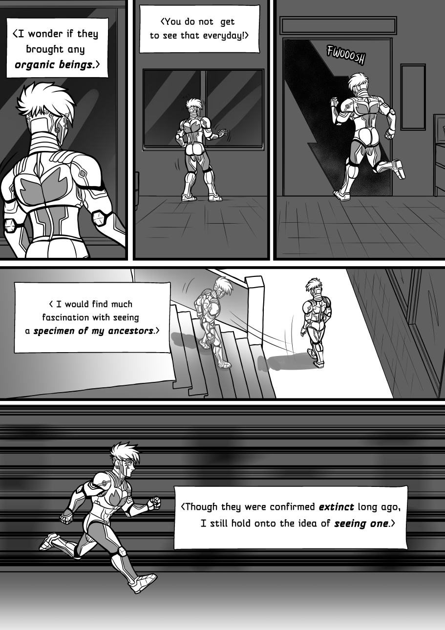 Crisanto is a cyborg soldier created to defend a newly stablished off-world colony. However, more than battles he yearns of companionship, concept that in his world is not embraced. Then he meets Brant, a cyborg who has just arrived from a scouting mission on Earth, and recently got transferred to the same base he is in. They get to know each other and their relationship develops.