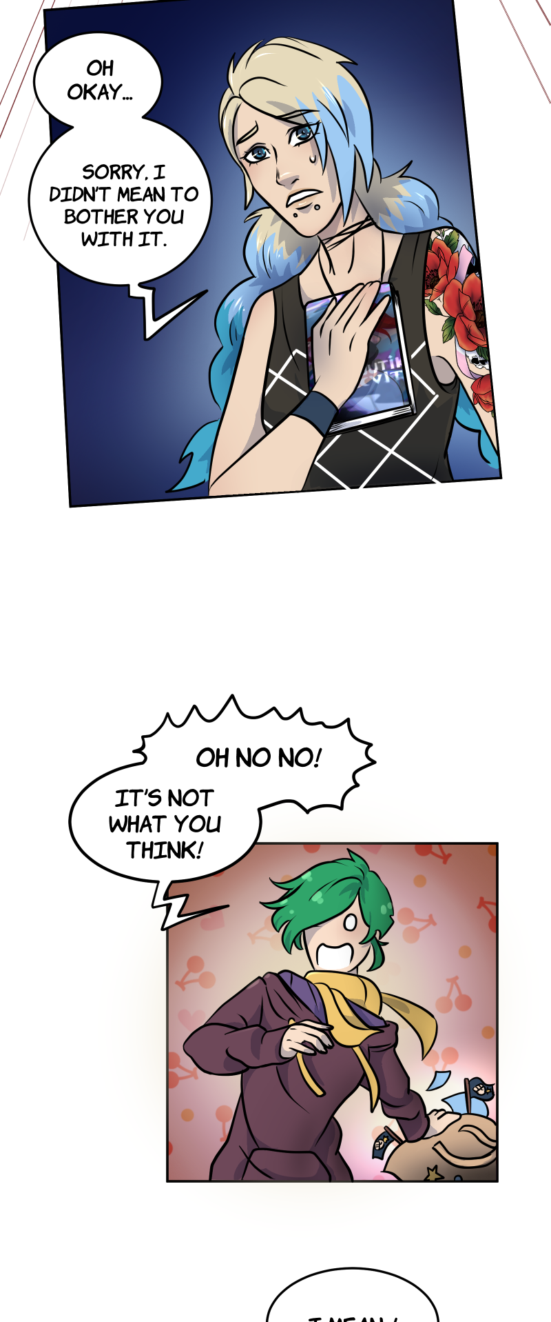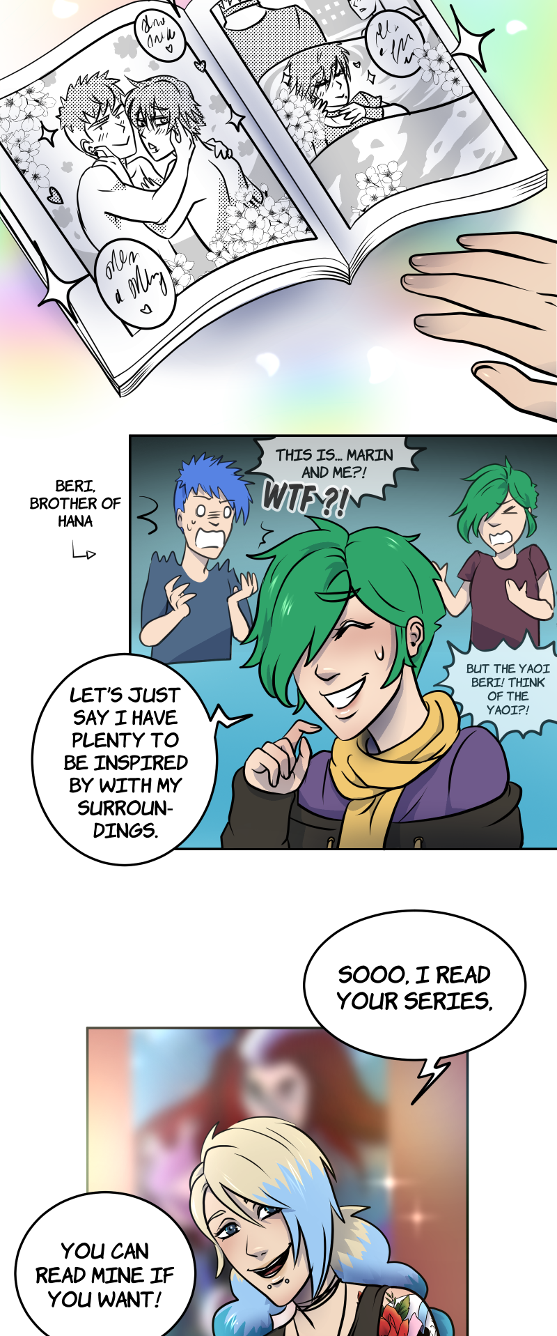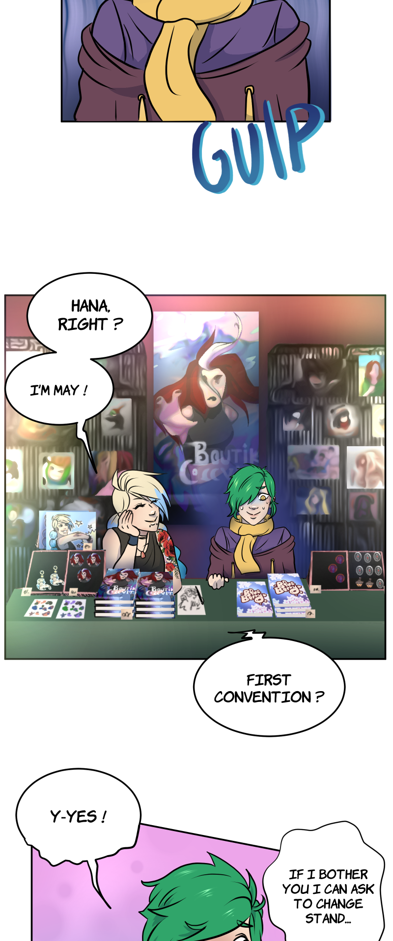 On the day of her first convention as an author, Hana meets May. Surprise, this one is actually “ThatPunchGirl”, the webcomic author that Hana secretly admires! Between misunderstandings, blunders, introspection and drawings, discover their adventures in the colorful world of comics and love.
