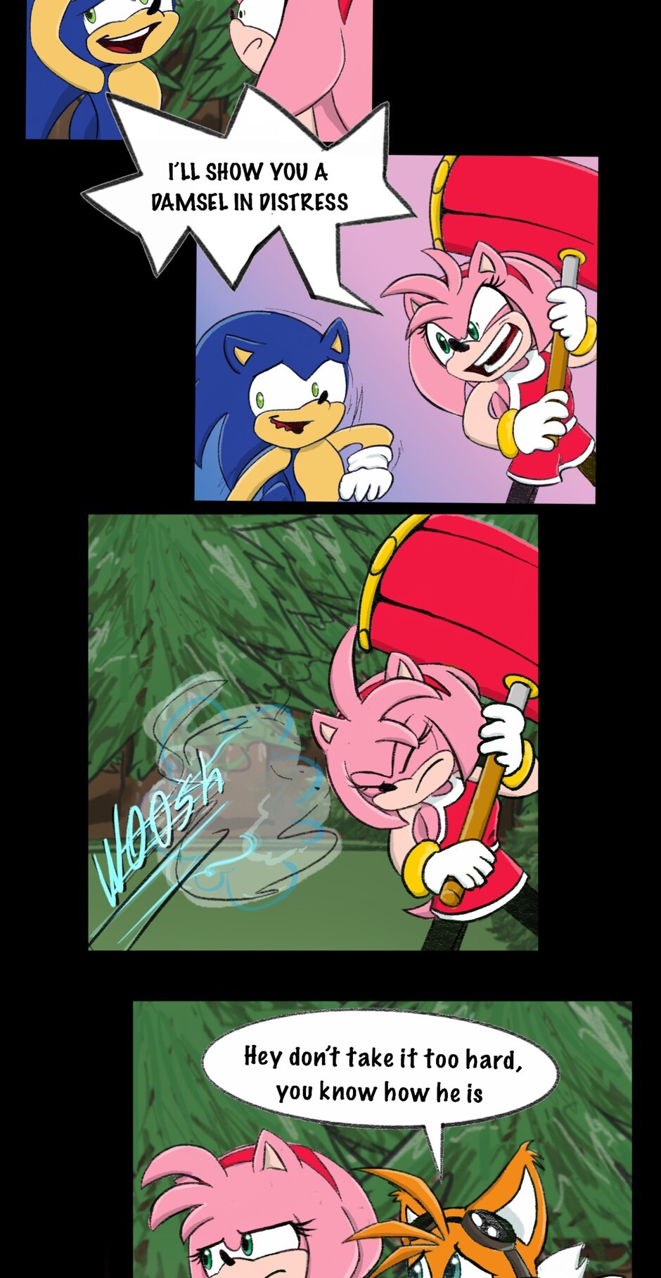 Amy ready to show sonic how heavy her hammer is