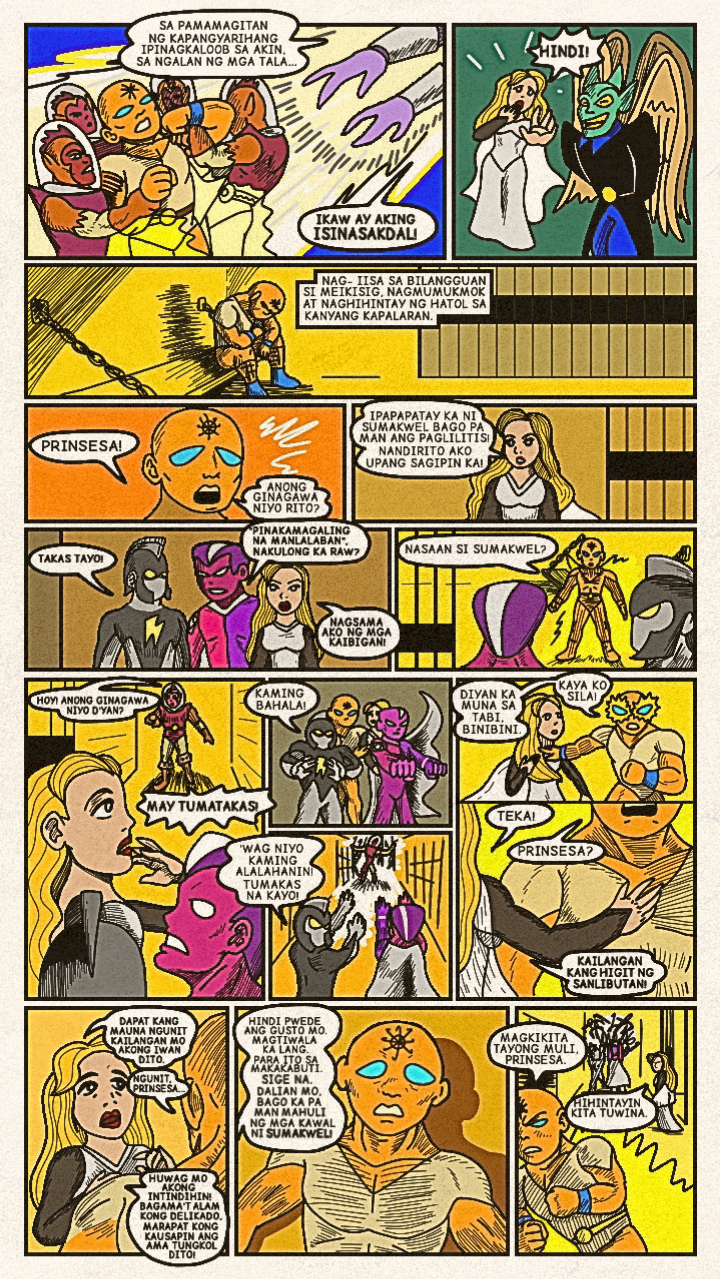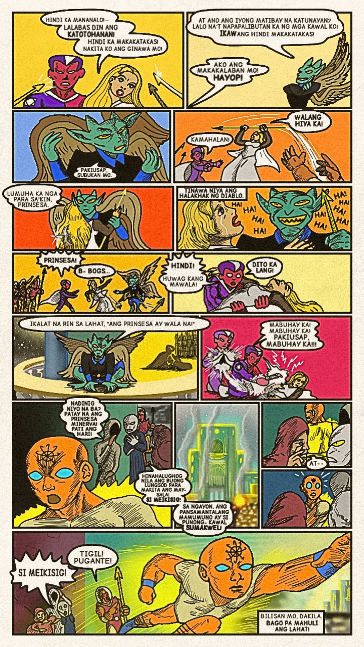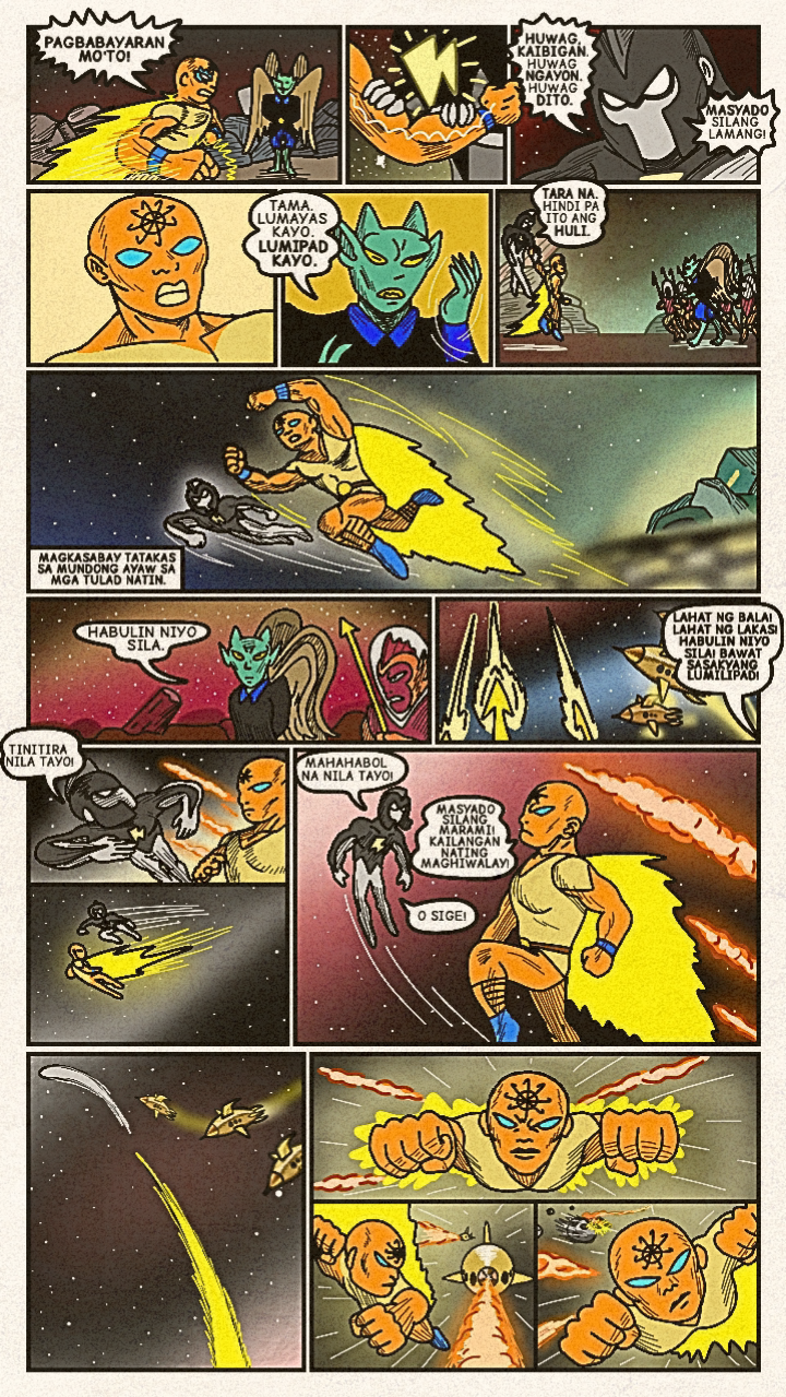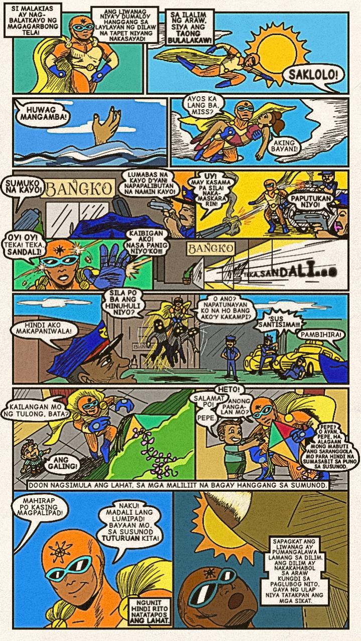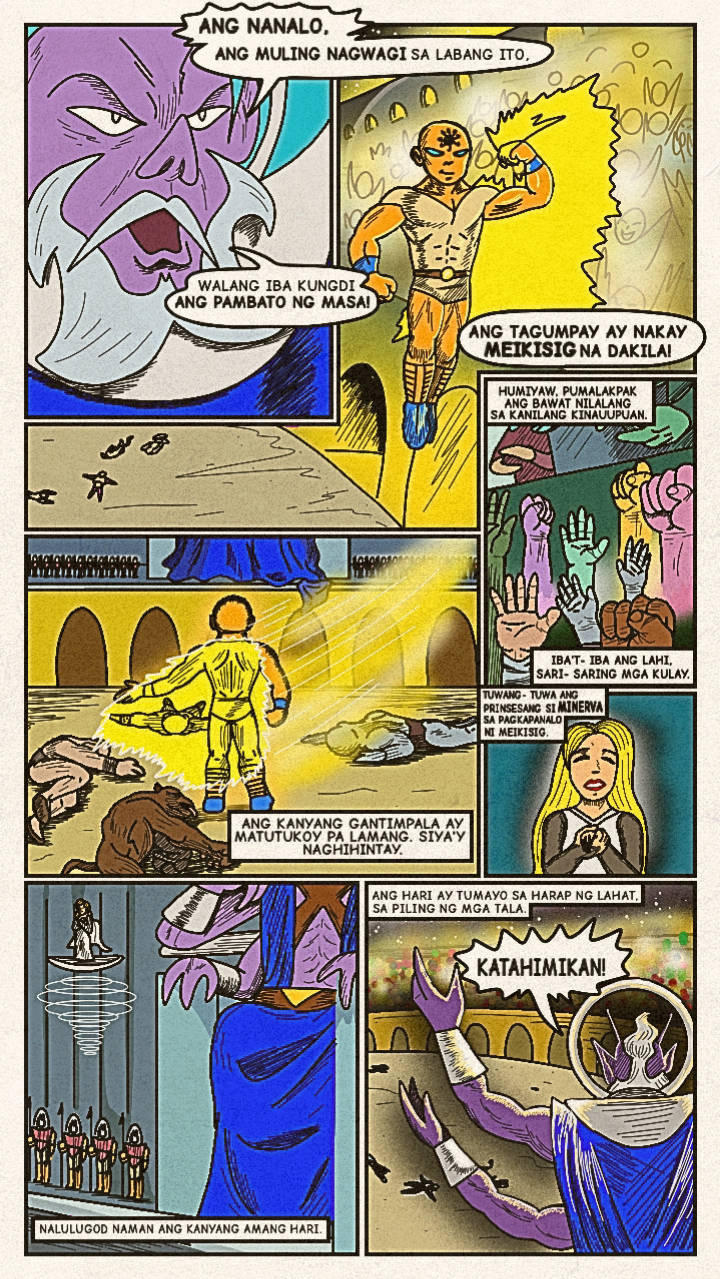 Originally published in April 2024, a new face dons a bright costume and enters the arena! Once the great space- gladiator, Meikisig, reborn as a rice farmer's son, Malakias uses his powers to help the needy and fight evildoers as the new hero in town— Batang Isig!