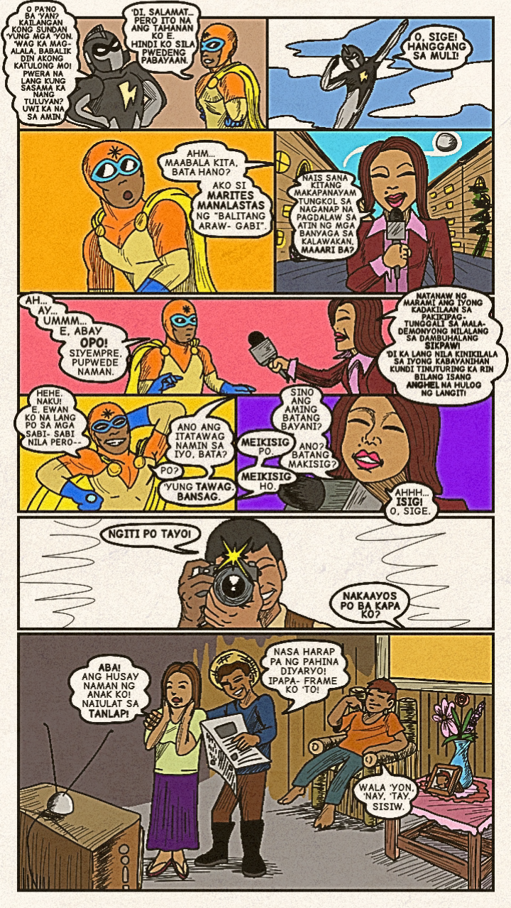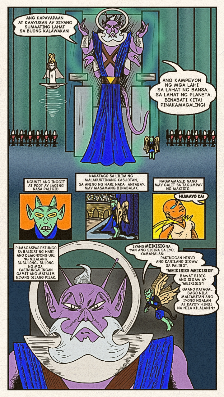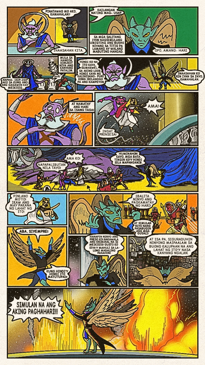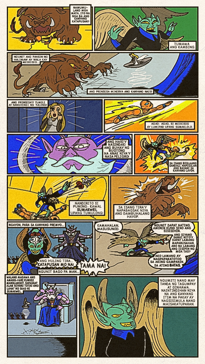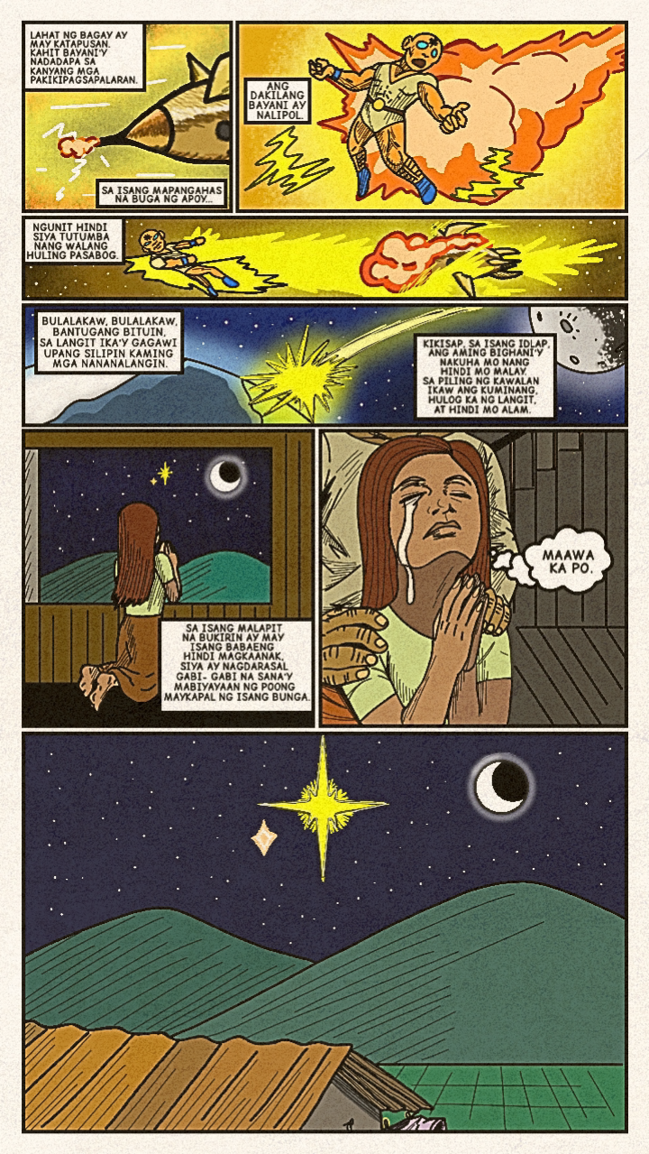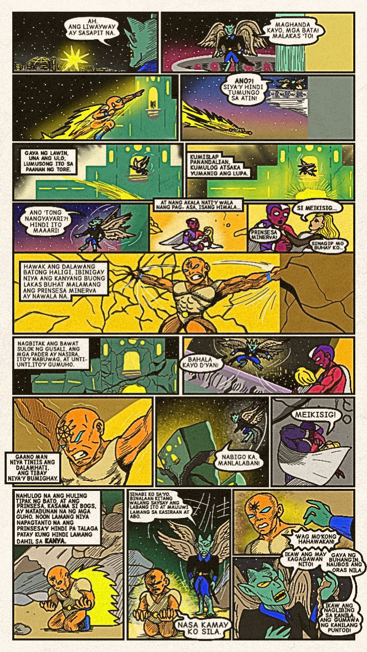 Originally published in April 2024, a new face dons a bright costume and enters the arena! Once the great space- gladiator, Meikisig, reborn as a rice farmer's son, Malakias uses his powers to help the needy and fight evildoers as the new hero in town— Batang Isig!