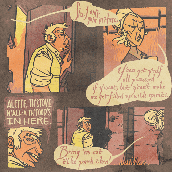 Everyone shares a large breakfast and waits for the return of their new acquaintance only to see less new enemies return.