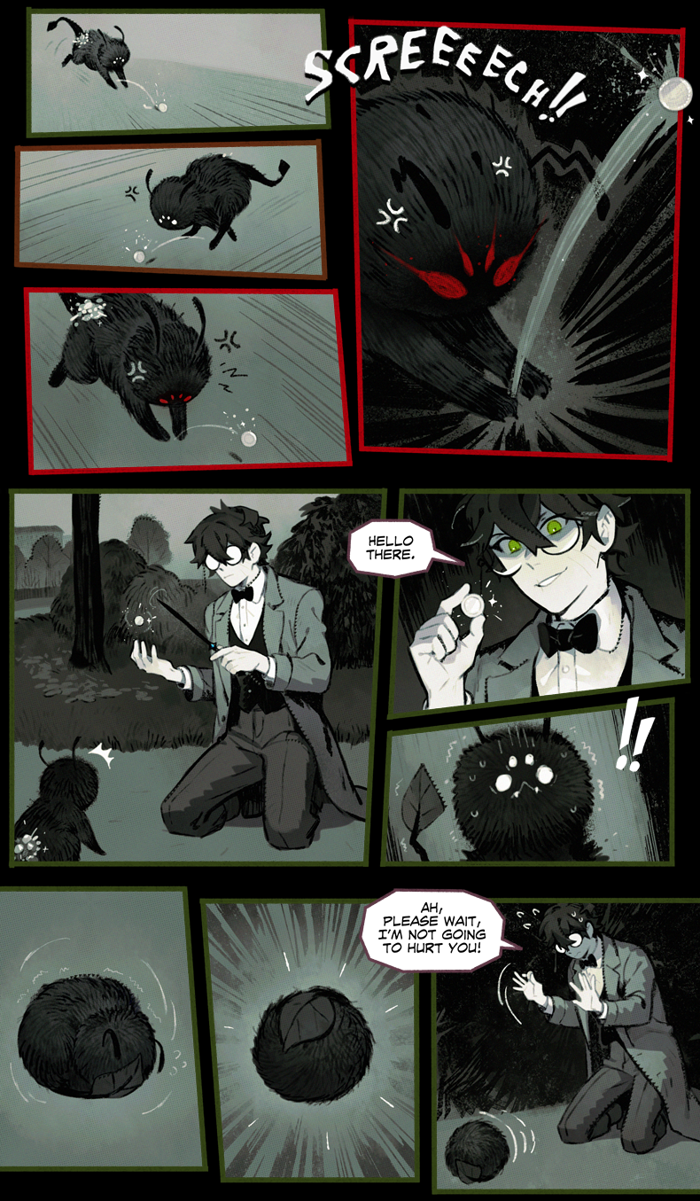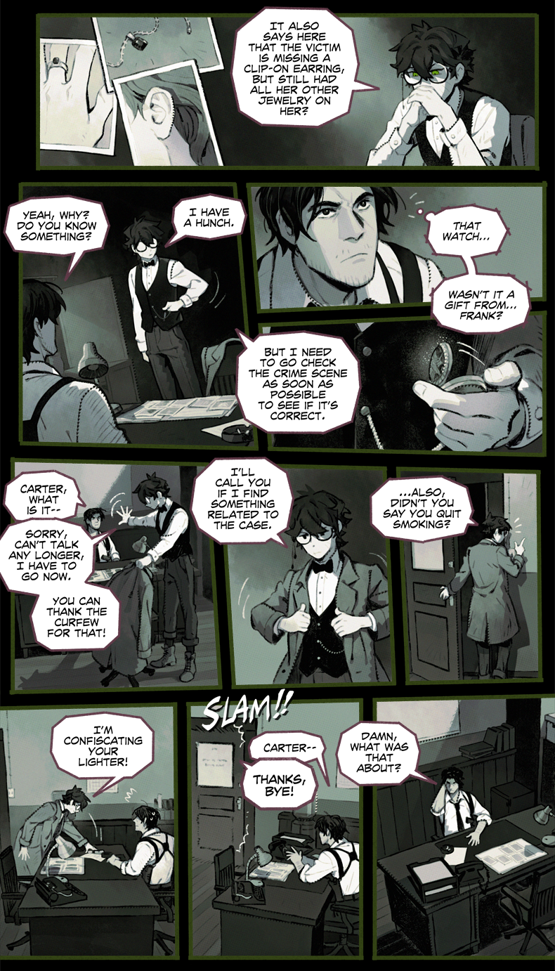 HAYDEN’S NOTES is a magic realism mystery with horror elements, set in the fictional country in the first half of the 20th century. The comic’s told in the non-chronological order revolving around Hayden Carter, immortal (by accident) gray mage, pursuer of knowledge and a witty nuisance for everyone around.