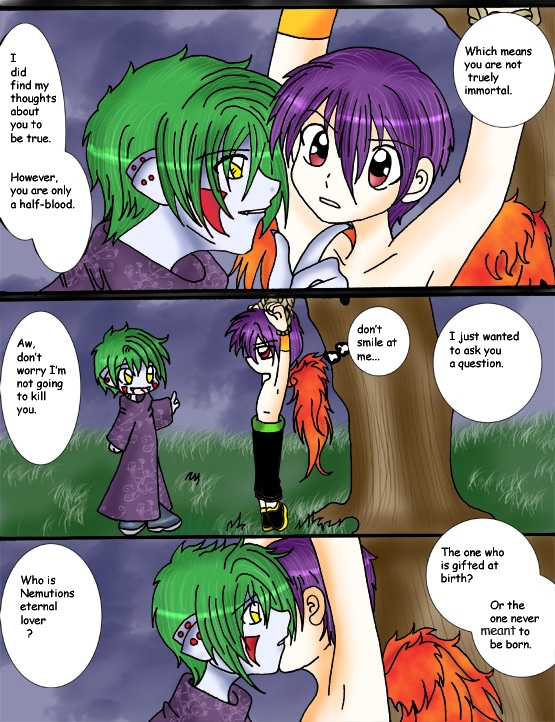 Once every 100 years, Nemution will be formed into a jewel his soul searching for his eternal lover. Once merged they must both accept each other for a complete transformation. However, because the lover is unable to recognize and prepare ones body for the merge, they destroy each other and are once again parted for 100 years; till nemution rises again and his reborn eternal lover is called to him. After many years of separation, Nemution has once again found his eternal lover; a promise and a vow, forever kept. But a new torment awaits the eternal lover.