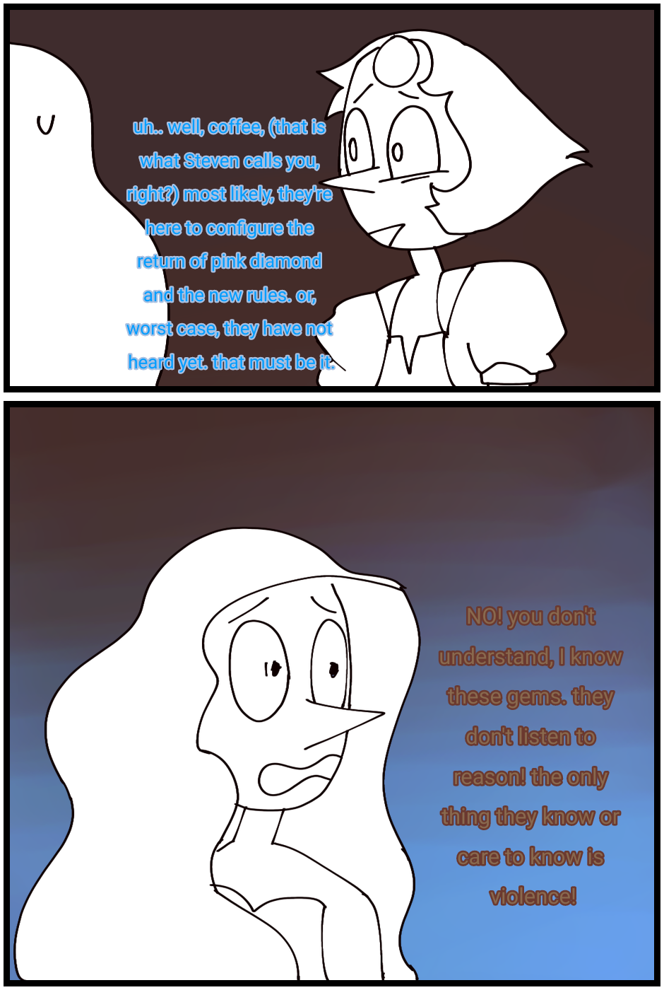 okok to make up for the prolonged absence I MIGHT do the next episode in color? but I'm still not sure, it's either full color or full length. also, I get kind of sentimental looking at the first episode. my art was terrible, but now I can look at my current without wanting to tear my actual eyeballs out teehee. so I improved I think