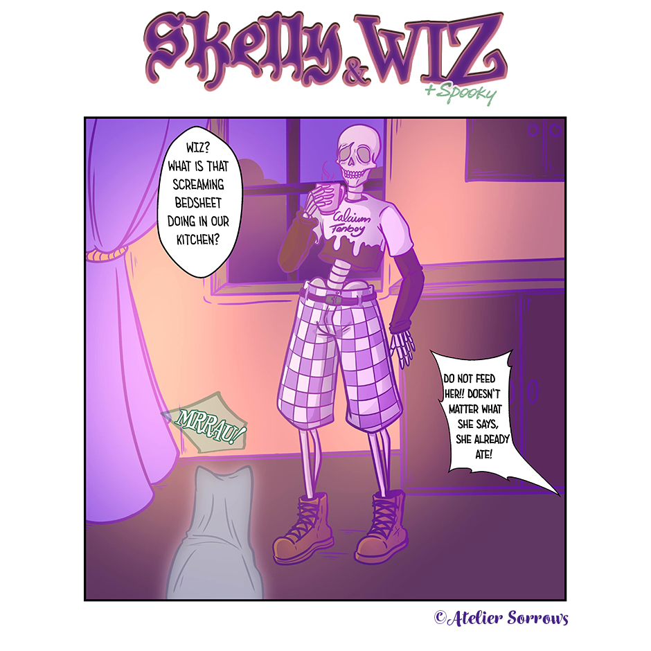 [ENG] An eccentric skeleton from a long forgotten century and a magical homebody, like no one else. Between spiderwebs, weird spells and yoga-classes, the unusual pair navigates through life. More or less, anyways.