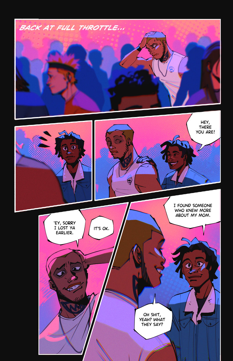 Ride or Die is an LGBTQ webcomic about two street racers who team up with a demon-possessed muscle car in the search for a missing woman, while being hunted by a deadly religious cult.