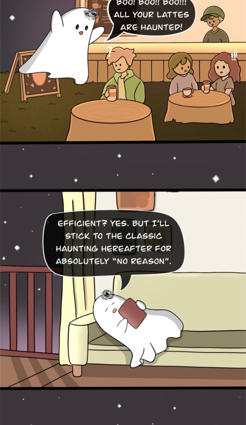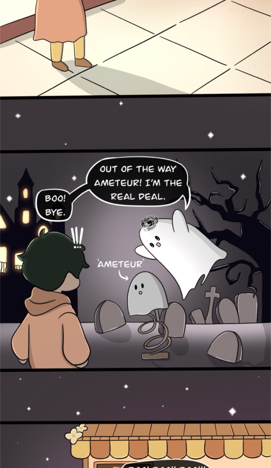 "Happily Haunted" is a sweet and sassy comic about Fizzie, a fun-loving ghost navigating the afterlife with humor, heart, and a dash of chaos. From funny mix-ups to witty antics, it's a charming peek into the not-so-ordinary life of everyone’s favorite spirit!