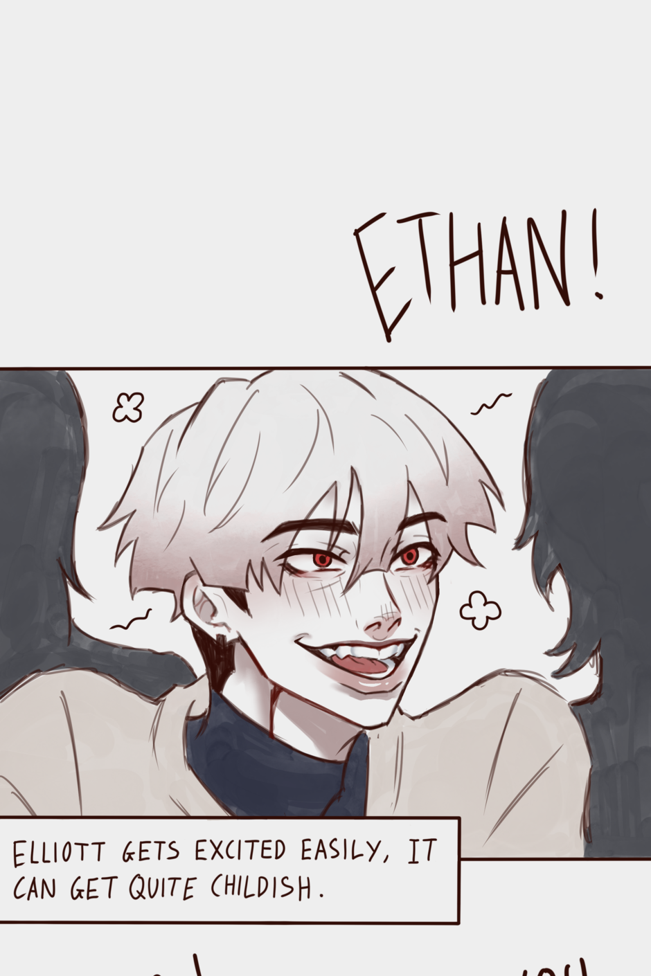 Elliott is a college dropout just trying to live off of this super hot detective guy, Ethan, in the super haunted city of Yonasaki! … They don’t talk about their relationship. Whether they’re friends, with benefits or not, they live day by day together. Though, things don’t work out well, especially not when Elliott’s troubled past slowly reveals itself in the form of… Another hot detective guy!? (Ethan has competition!?) (wait, there’s a haunted cult now too?!) — [updates every TUESDAY]