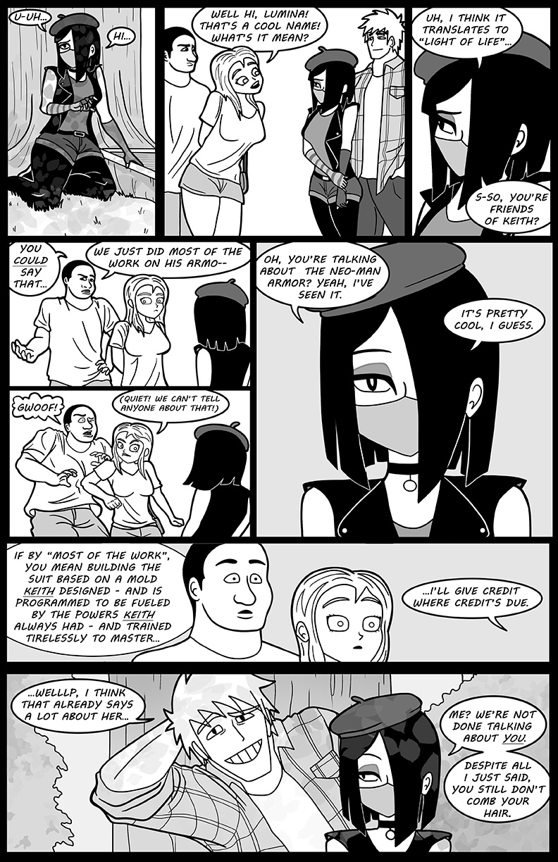 Keith's bond with his friend Lumina grows, but adds more for him to juggle in his already-complicated life: The Criminal Underworld is still active, the EMC begins to take new measures for their twisted cause, and his boss, Dr. Aldrich, is beginning to grow suspicious of Keith and his team! In order to find balance, Keith will have to merge the connections he's made both as a civilian and as Neo-Man - even if it means giving away his secret identity!