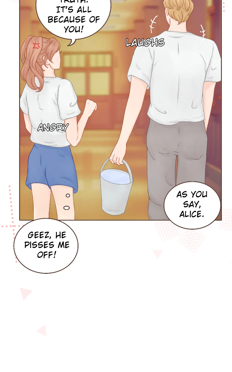 In second part, Lucas teases Alice as punishment for her previous behavior. He does that because he doesn’t completely believes her. Also Alice looking at the board with last names is something which connected to next chapters.