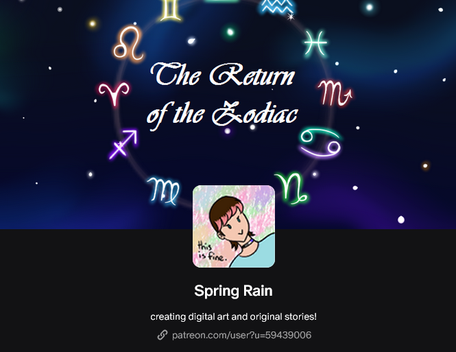 Looking up my username SpringRain in the Patreon search should also work!