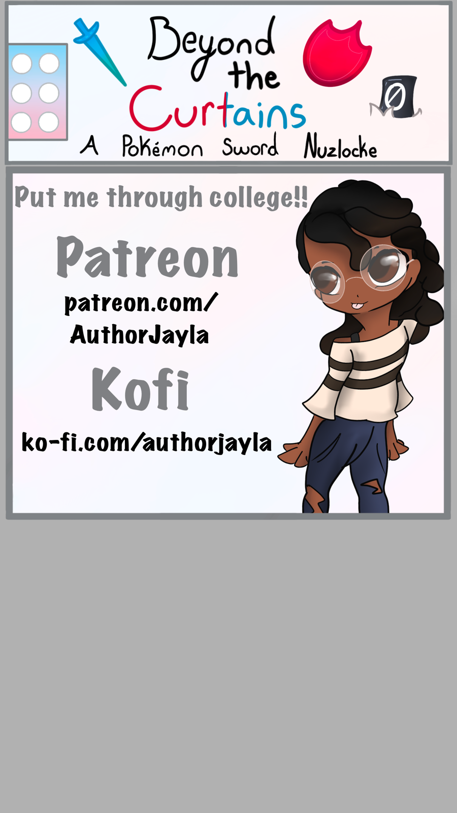 Jayla has been fascinated with Pokémon Showcases for years and when she gets the opportunity to join in on the new Showcases coming to Galar she leaps for it! Alongside her friend Hop in a twist of a Pokémon Nuzlocke narrative Jayla tries to find success in Showcasing and the Gym Challenge… and the heartache that comes with both.