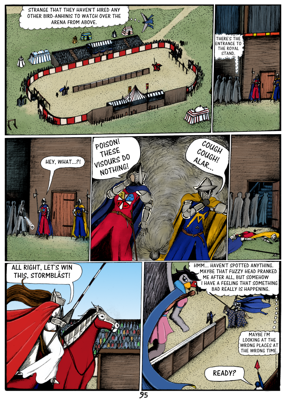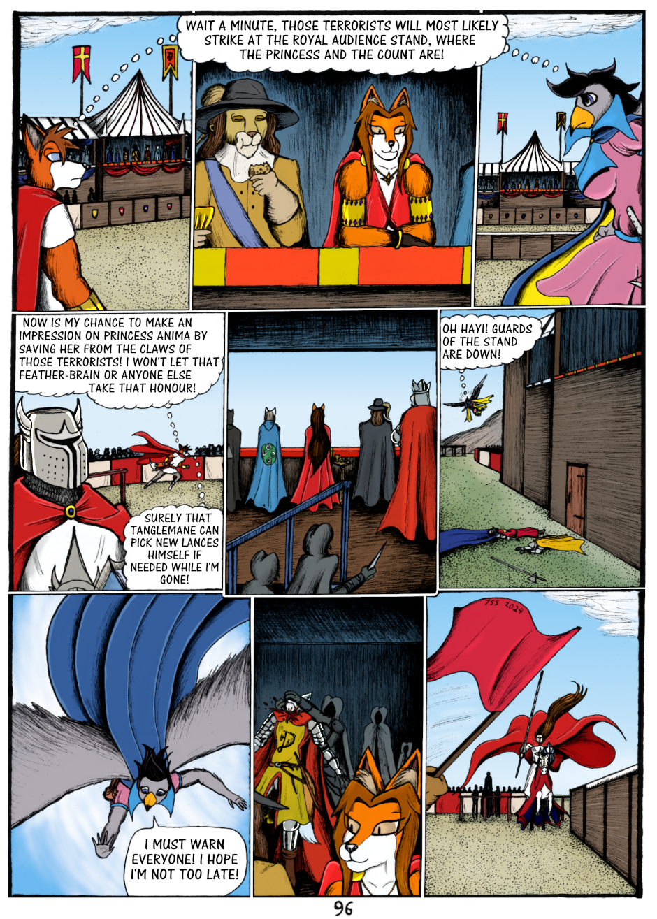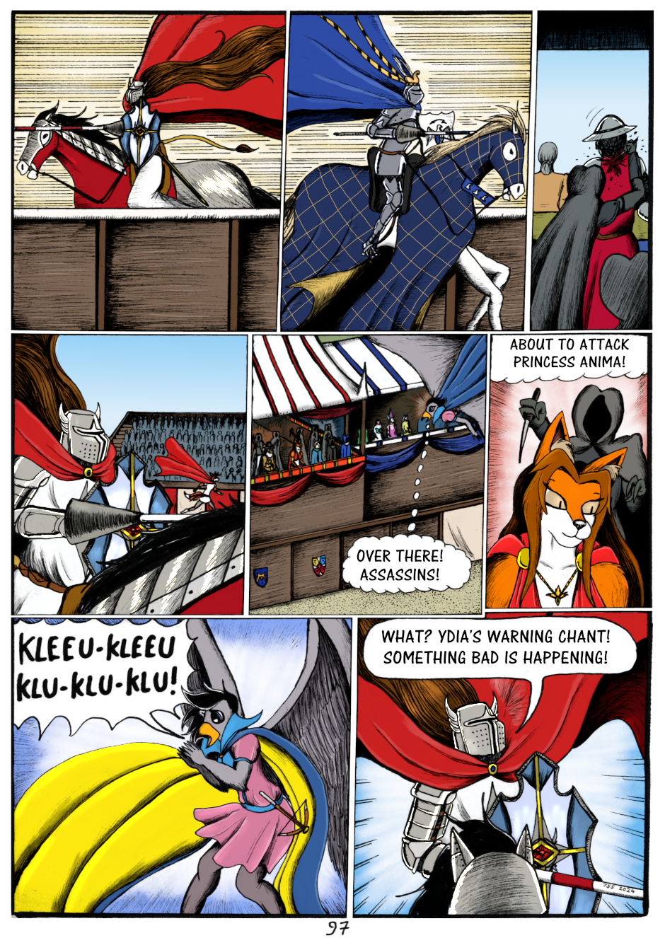 While Sir Kiljaos's jousting match continues, a group of assassins break into the royal audience booth, about to assassinate Princess Anima and the other nobles! Ydia spots them and lets out loud goshawk chanting to warn everyone. Can they stop the assassins before they stab the princess??