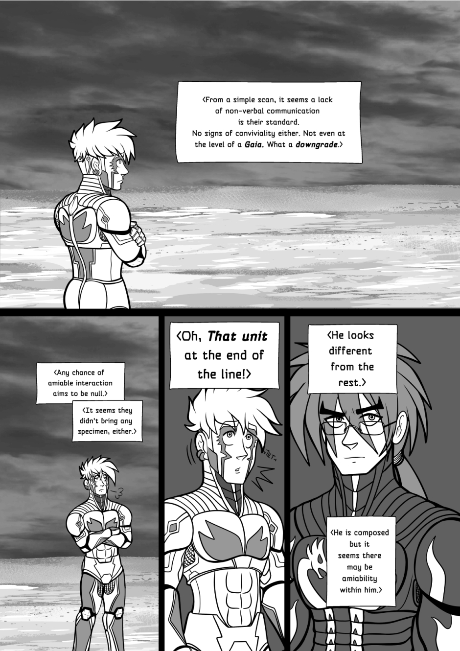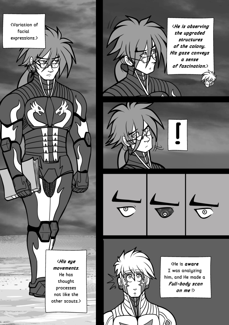 Crisanto is a cyborg soldier created to defend a newly stablished off-world colony. However, more than battles he yearns of companionship, concept that in his world is not embraced. Then he meets Brant, a cyborg who has just arrived from a scouting mission on Earth, and recently got transferred to the same base he is in. They get to know each other and their relationship develops.