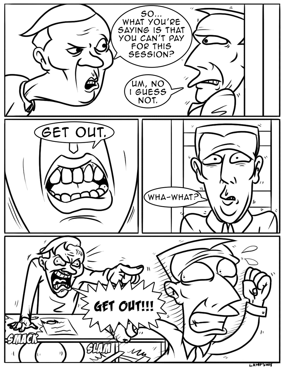 An introduction to the main character as he details his predicament to a therapist who couldn't care less.