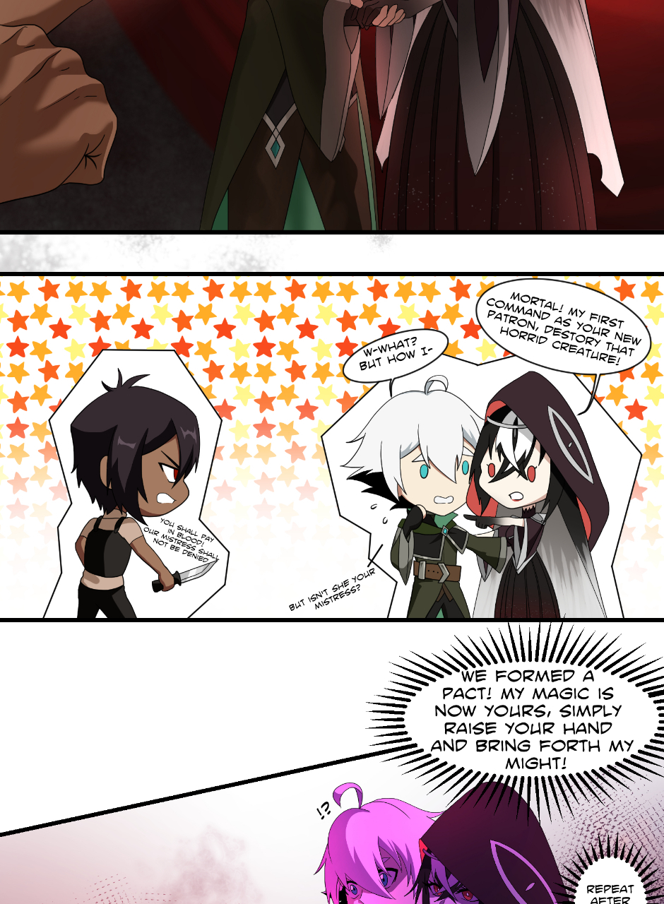 As the newly pacted Warlock and Patron emerge they get their first test in magic.