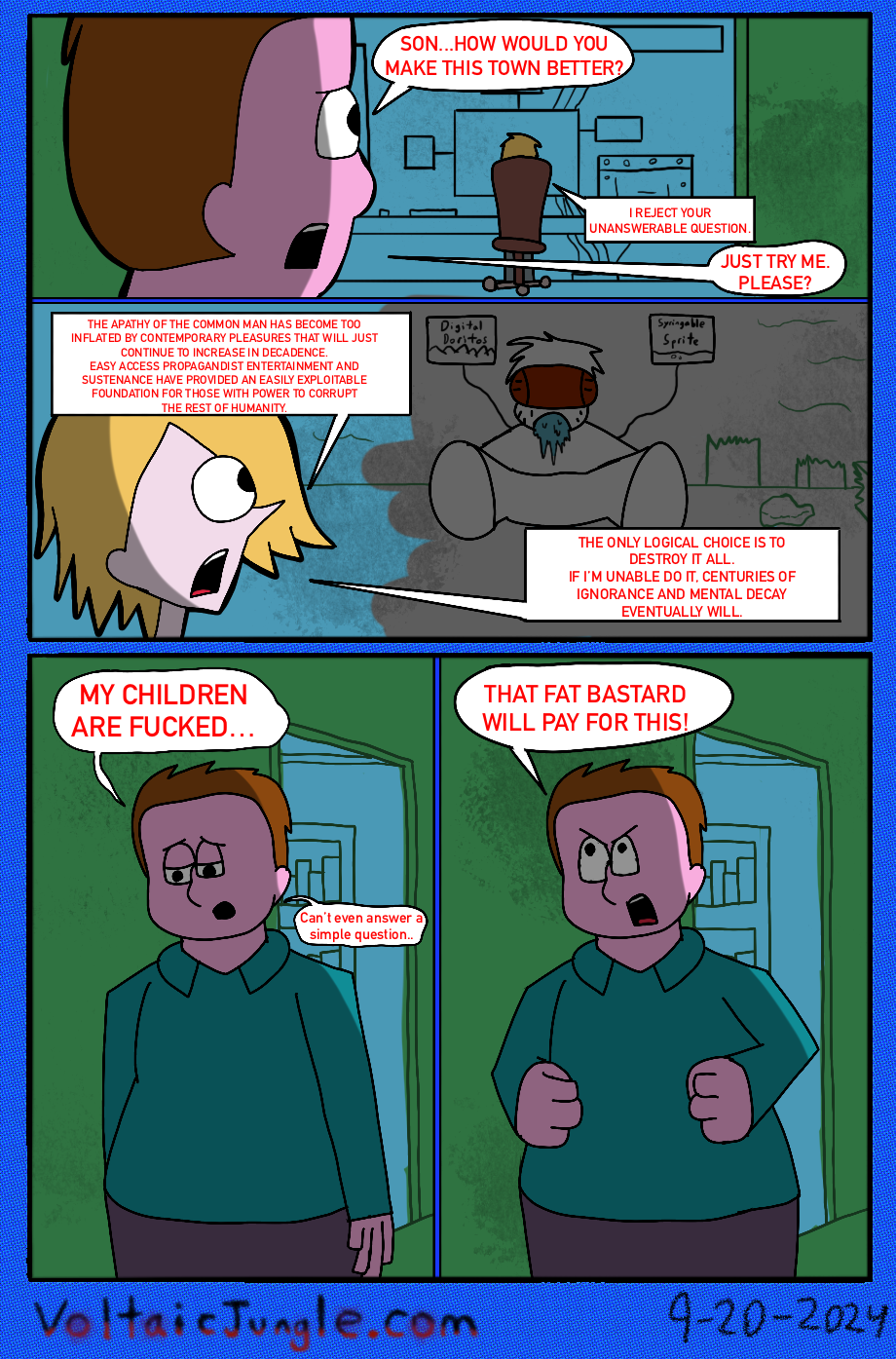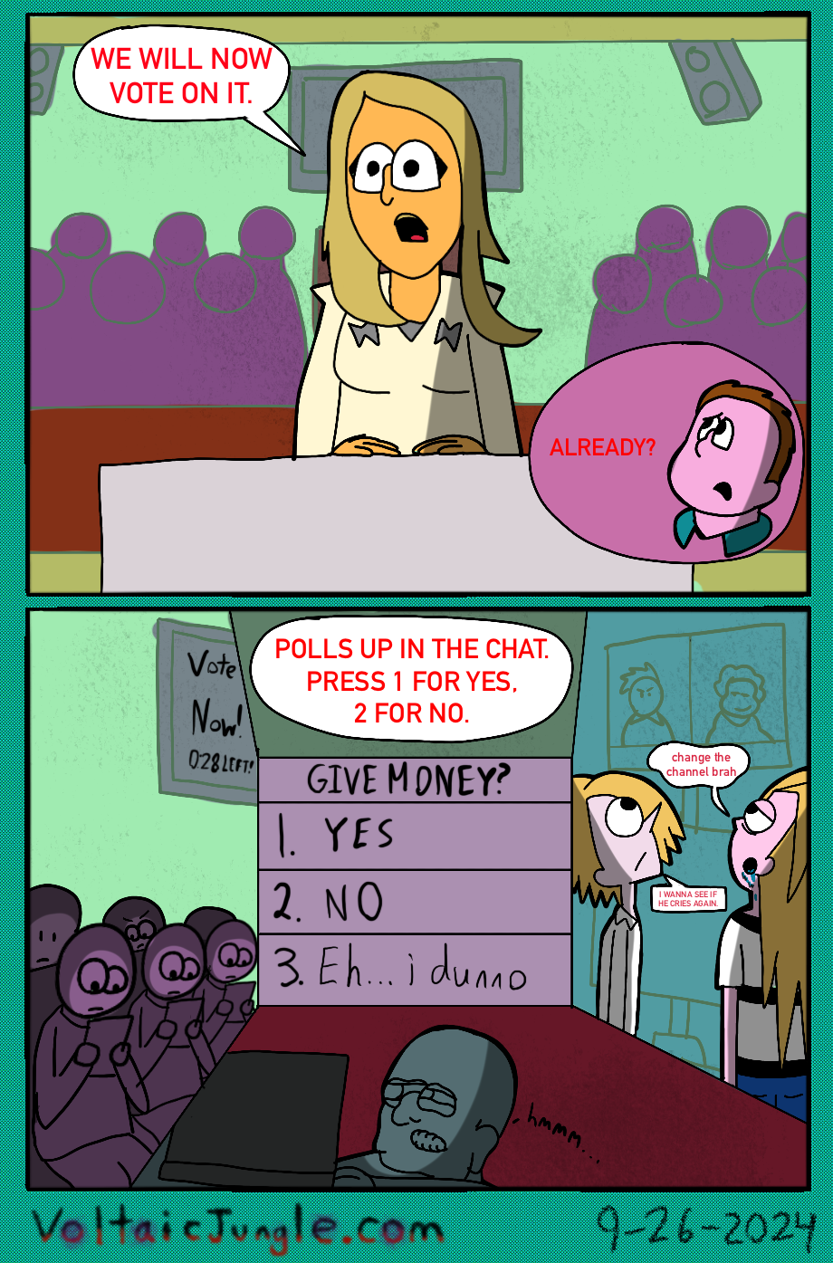 The hit early 2000’s cartoon continues churning out new adventures! Rebooted back to their iconic teenage selves, our six protagonists must cope with their renewed, seemingly endless existences. Watch these poor souls continue to entertain forever and ever and ever and ever and ever... Also available at www.voltaicjungle.com/free_falling