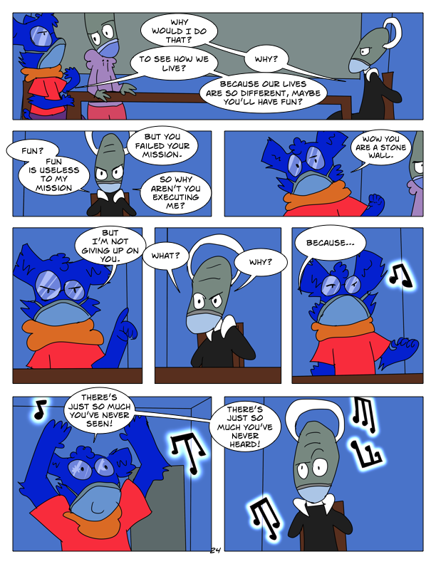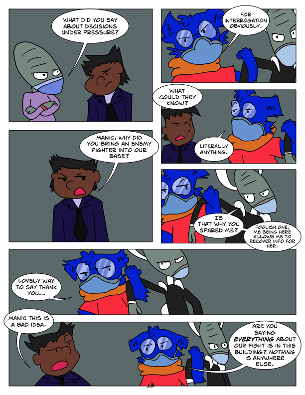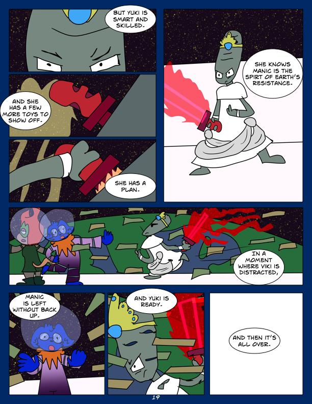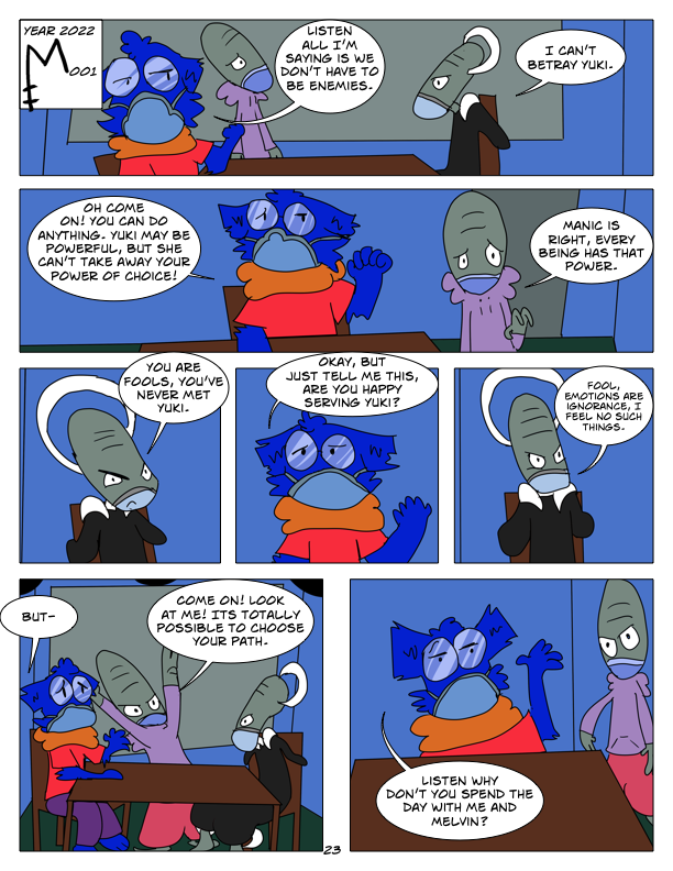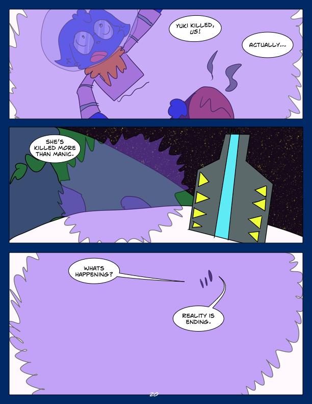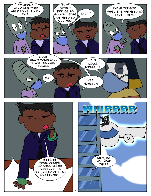 In this chapter, we encounter the first of seven super powered Grays, Echo. She tries to ambush Manic, but Manic Captures her. Also in this chapter, we check in with M002, M003, and their future fusion form.