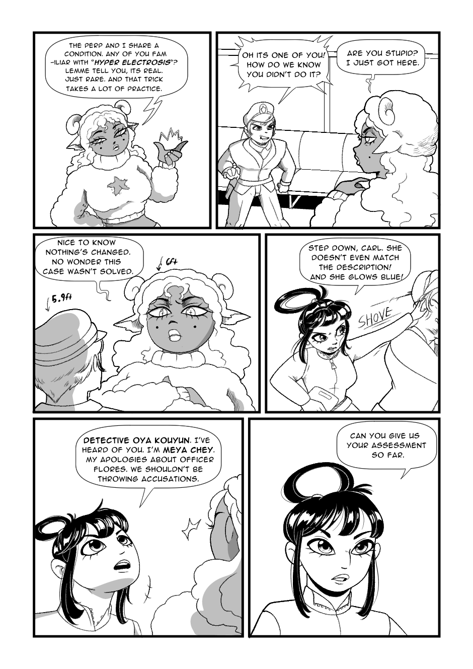 I love how I did Meya’s hair. The solid black was fun to do, and the circle pony tail is just cute. A small note , my friends- pay attention to the characters pupils as the story progresses.