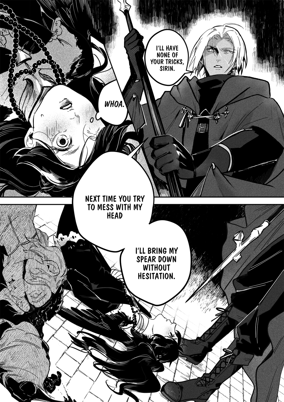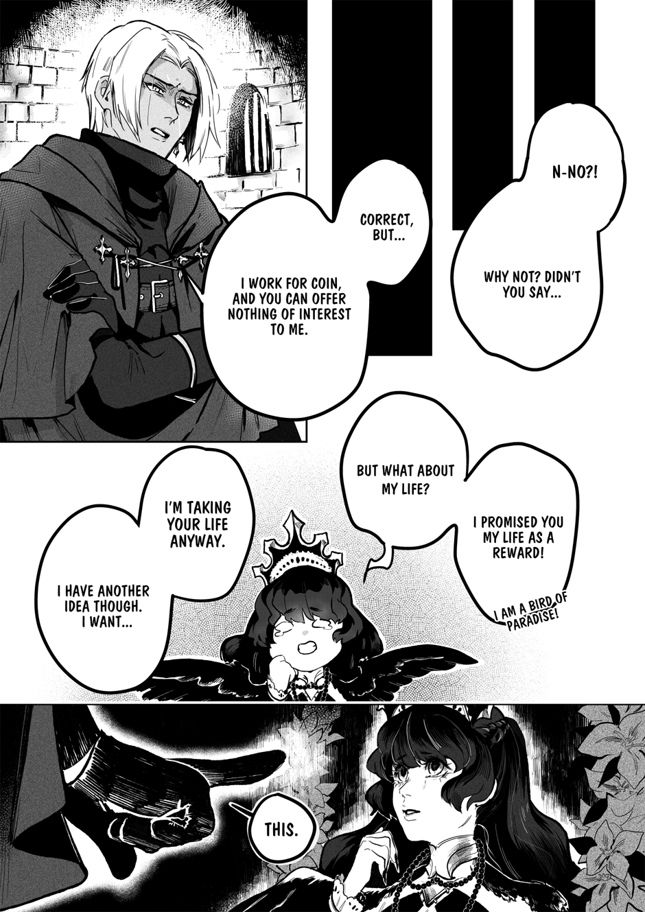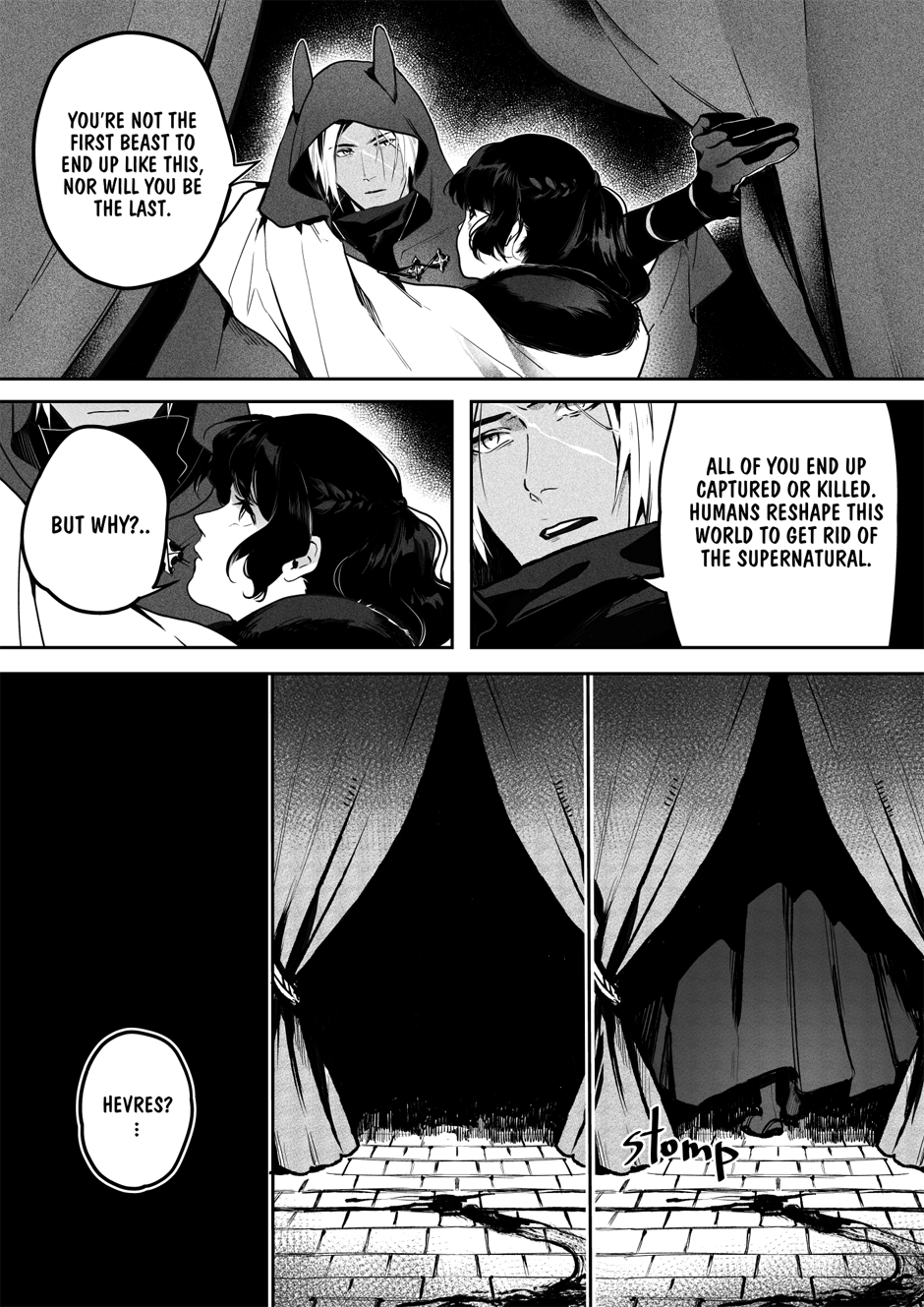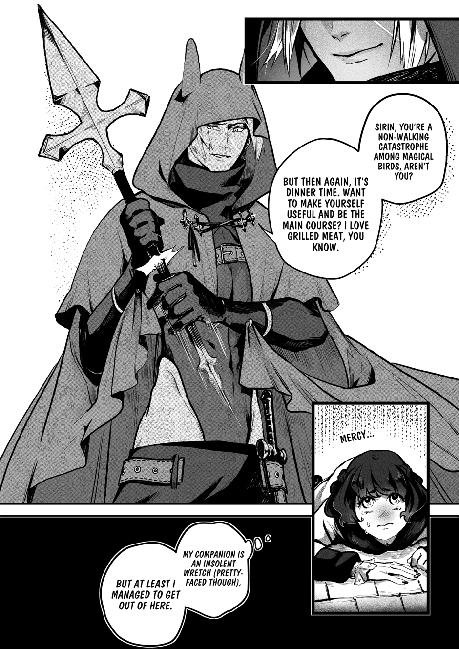 Nightmares not conjured by demons, tranquil waters untroubled by the whims of gods and untouched by mermaids, and dense forests where no wicked spirit haunts the traveler... Such is the world devoid of mythical beings and magic, the world that humanity yearns for. Hevres, the finest hired hunters of the supernatural, calmly aims his spear at his latest quarry – the bird of paradise Sirin. Yet, instead of a cry for mercy, he hears a beguiling offer. Can one bargain replace another?