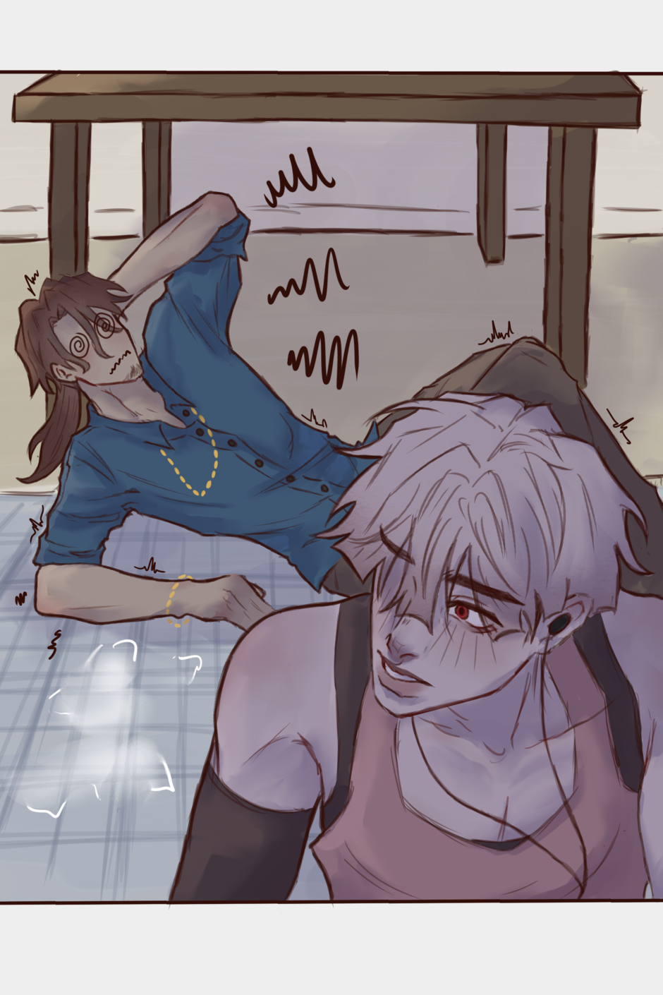 Elliott is a college dropout just trying to live off of this super hot detective guy, Ethan, in the super haunted city of Yonasaki! … They don’t talk about their relationship. Whether they’re friends, with benefits or not, they live day by day together. Though, things don’t work out well, especially not when Elliott’s troubled past slowly reveals itself in the form of… Another hot detective guy!? (Ethan has competition!?) (wait, there’s a haunted cult now too?!) — [updates every TUESDAY]