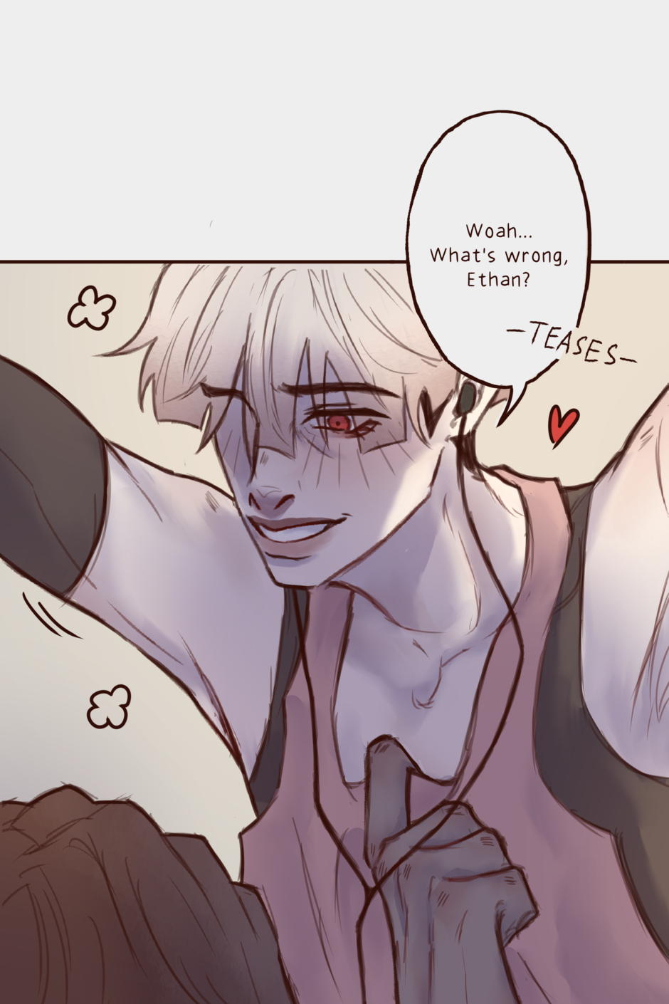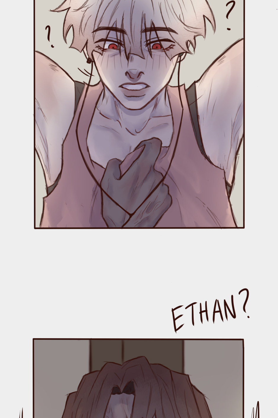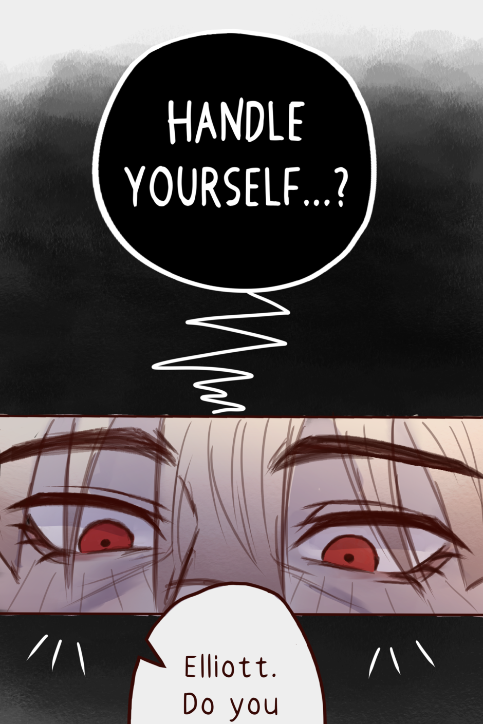 Elliott is a college dropout just trying to live off of this super hot detective guy, Ethan, in the super haunted city of Yonasaki! … They don’t talk about their relationship. Whether they’re friends, with benefits or not, they live day by day together. Though, things don’t work out well, especially not when Elliott’s troubled past slowly reveals itself in the form of… Another hot detective guy!? (Ethan has competition!?) (wait, there’s a haunted cult now too?!) — [updates every TUESDAY]