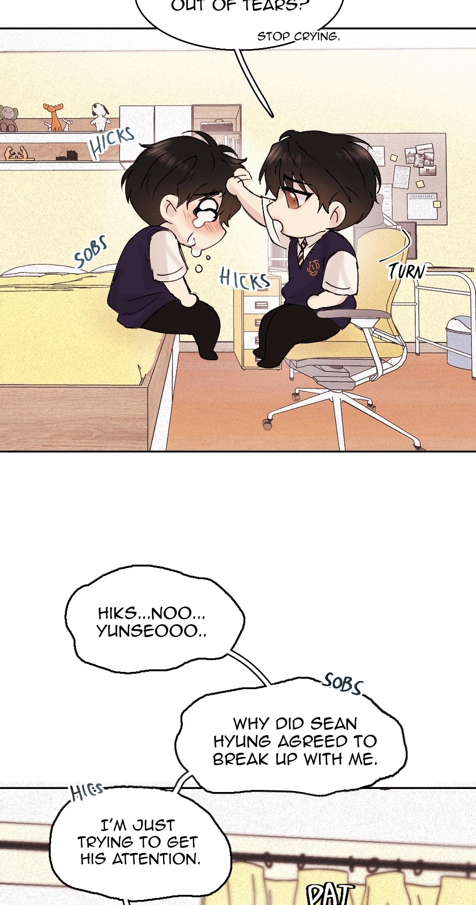 Oh Raon's ideal type is someone who is smart, intelligent, handsome, tall and charismatic like his boyfriend, Sean. But in an instant his ideal type changed when his relationship with Sean ended. Let's just say Raon has a trauma with someone smart like Sean, making Raon targeting Jiho, his school troublemaker to be his boyfriend.