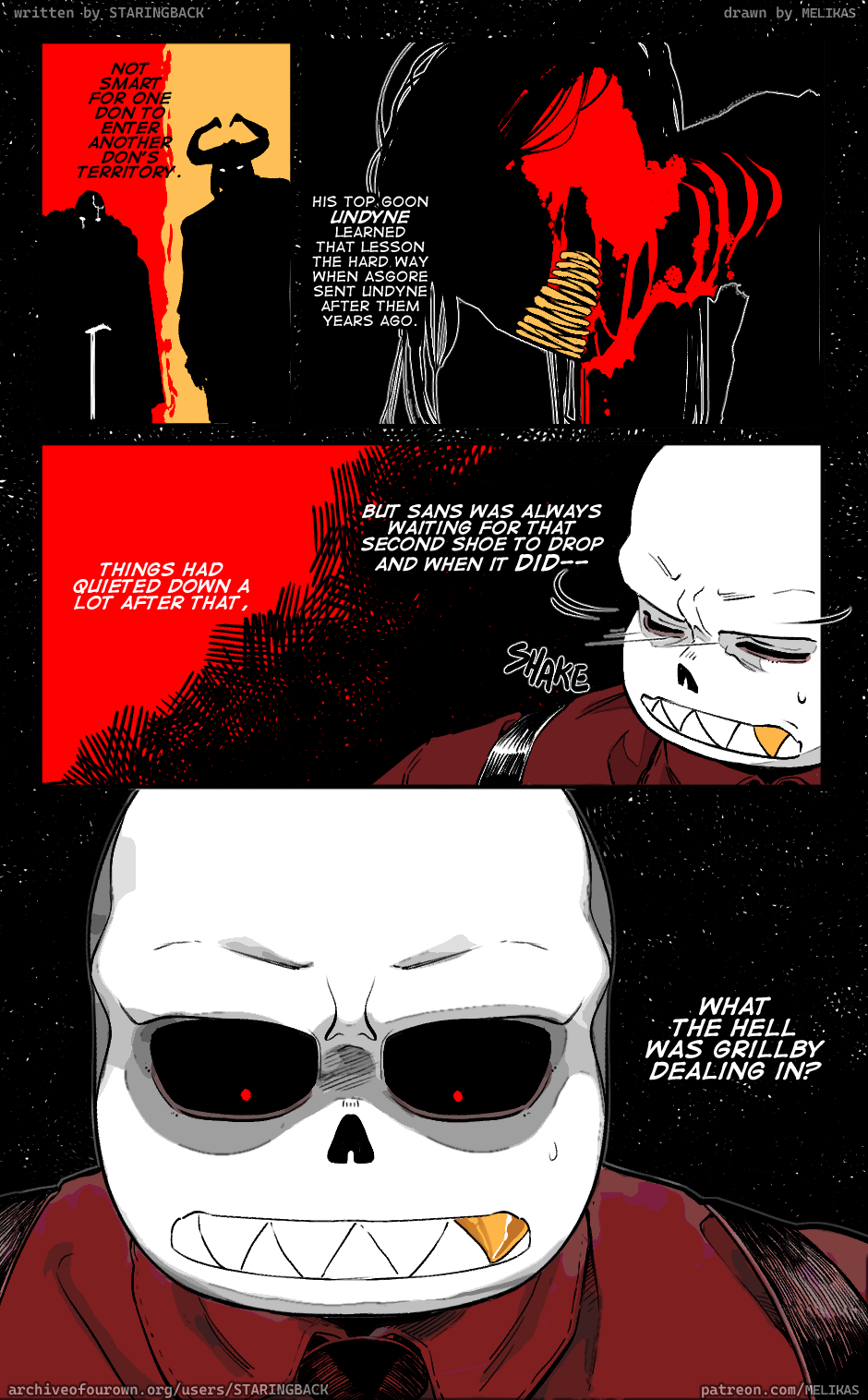 Frisk sang for a living. She sang in clubs that were populated by mobsters, murderers and the most violent criminals her city had to offer. She honestly thought things couldnât get any worse until corruption in the form of a grinning skeleton came strolling into her life. His name: Sans.