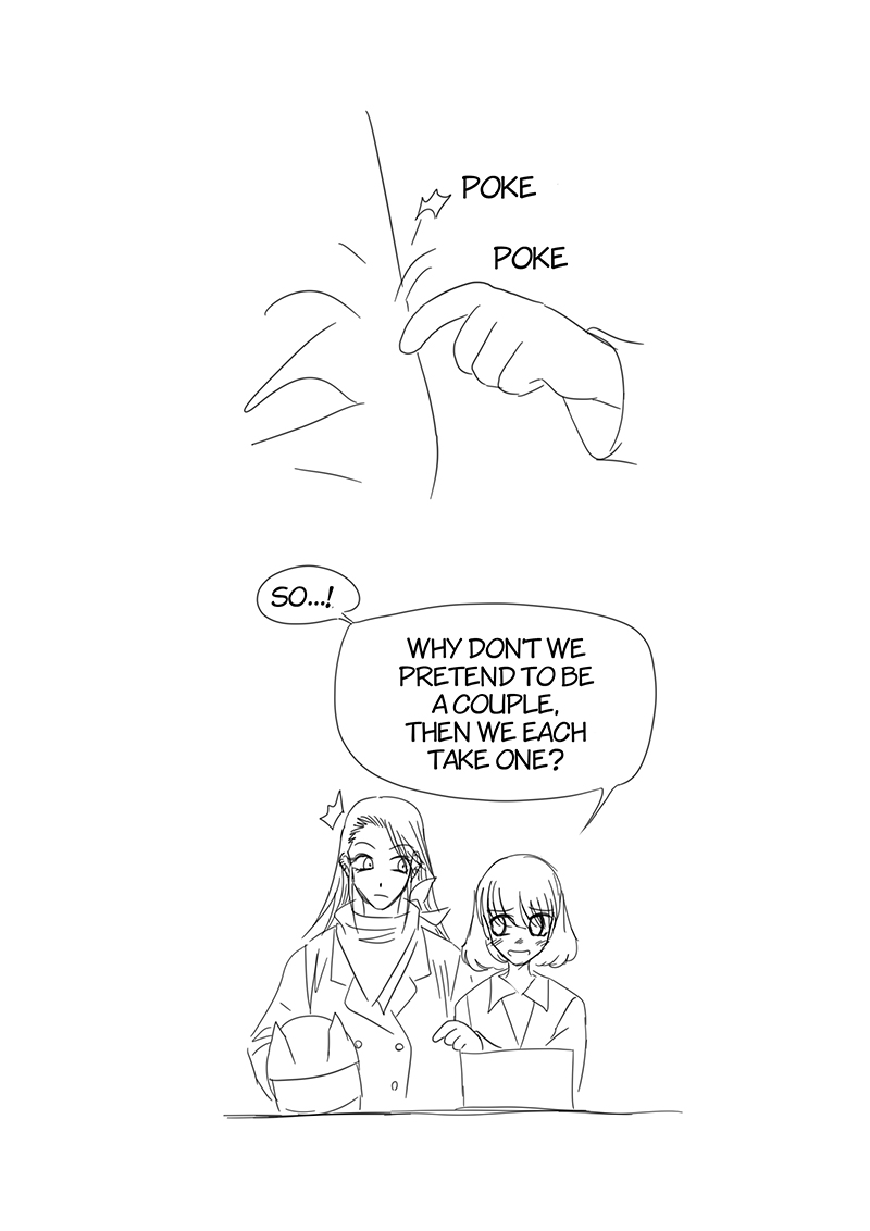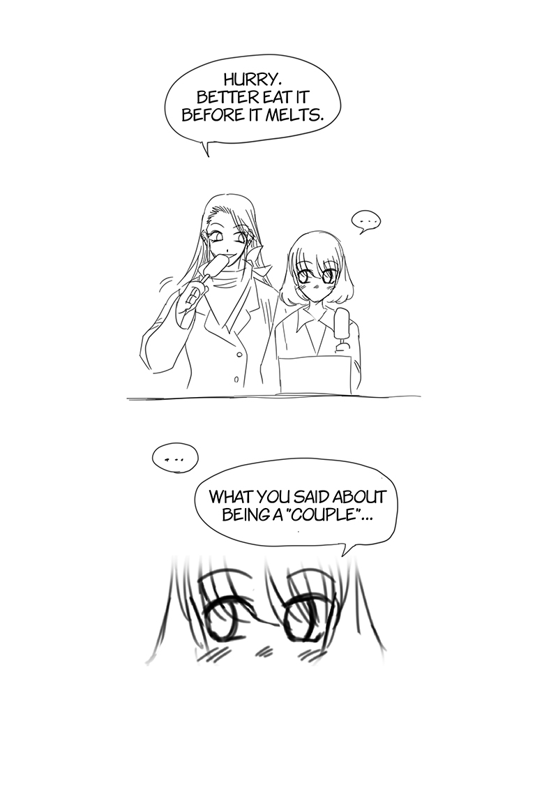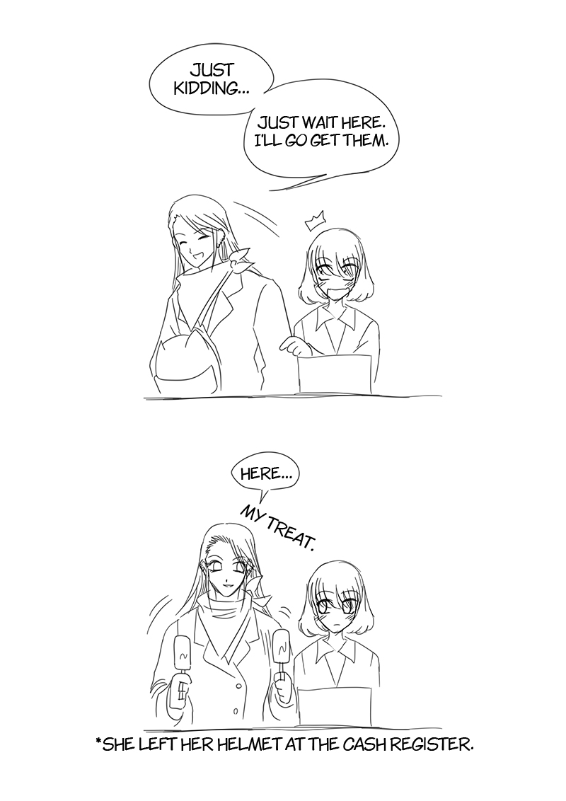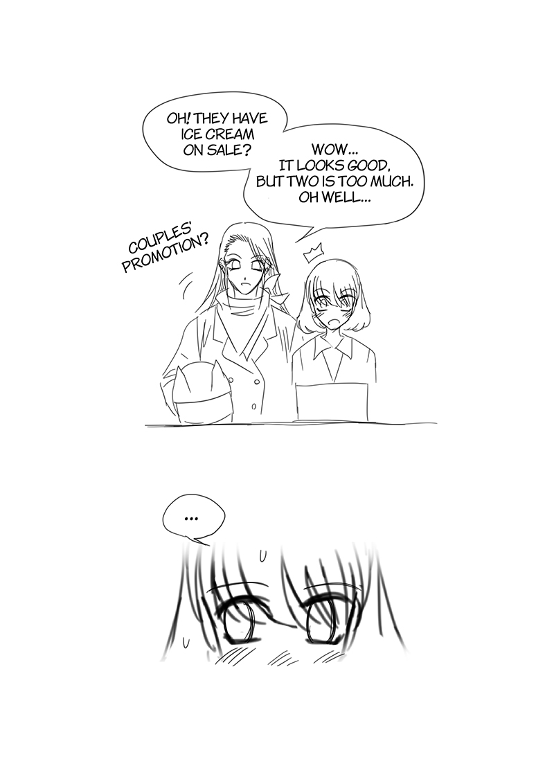 That time we had seen an ice cream promotion in the convenience store. My wife said "Buy-2-get-discount promotion like this, if it's a single person what should they do? If they gonna eat all ice cream by themselves didn't that will cause them a stomach ache?", I got the idea from that, and BOOM! this chapter. I was super busy at that time so I decided to create a raw storyboard and typesetting in it since I was afraid that if I wait until I have time to do it as a complete manuscript the idea will not fresh or I might forget about it and never get it done.