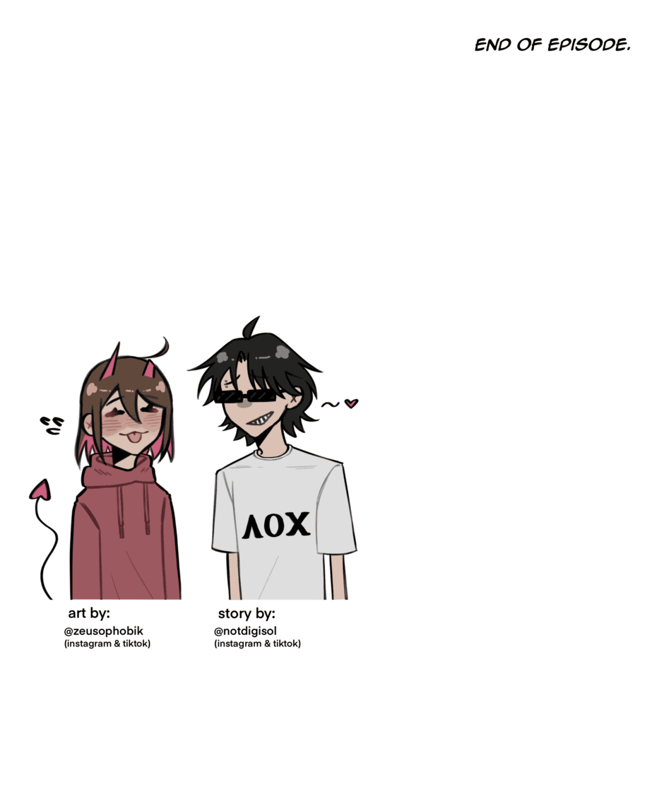 thank you so much for reading the episode! i hope you enjoyed it :3 let me know in the comments what you thought of it!! pls follow notdigisol on tiktok i have like 2 followers 🤩 (and zeusophobik too!(optional))