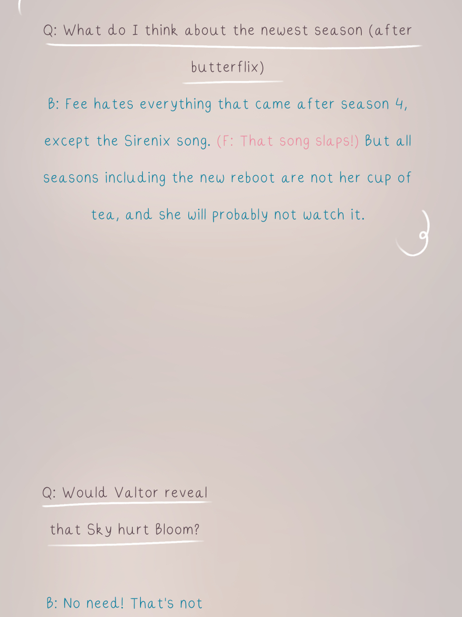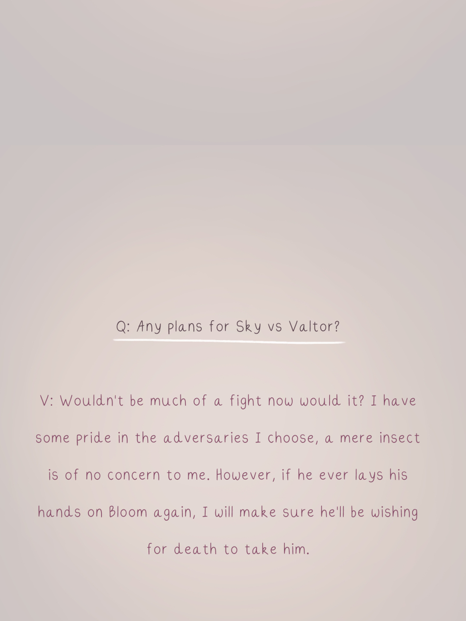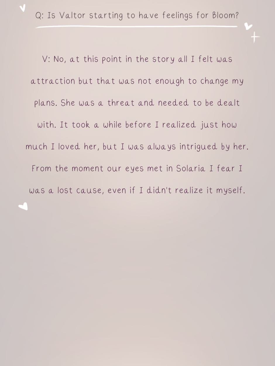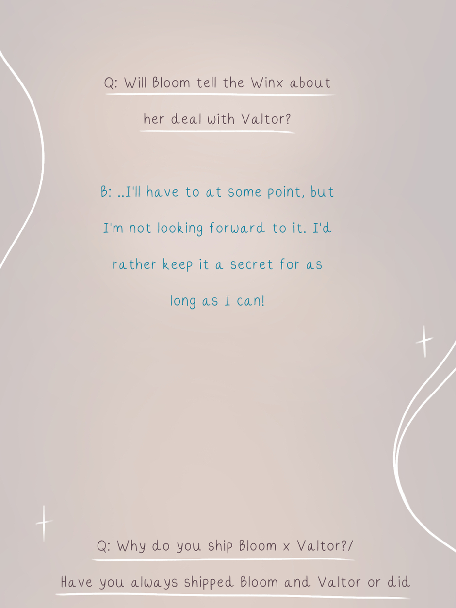 Step into the world of Winx Club once again and relive season 3 with a twist! Following Bloom and Valtor's journey from enemies to... well, you can all probably guess what comes next. In a dimension filled with magic, secrets, and immense powers; Valtor, a sorcerer looking to stand at the top of all magical beings, finds an unexpected connection with Bloom, a fairy fighting for the light. How will these two navigate their feelings in a world that keeps them apart?