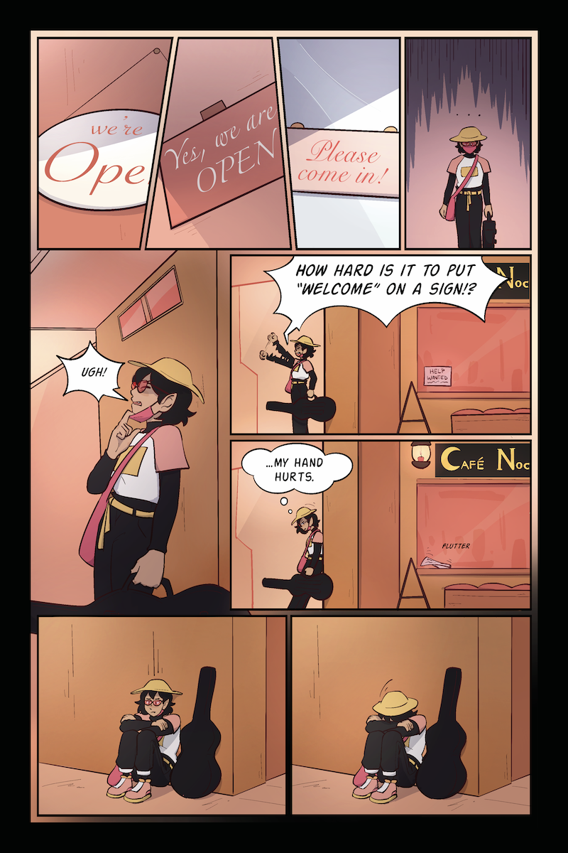 Living as a newly-independent, blood-sober vampire, Hestia just wants to live free, eat good food, play her bass and forget the past. But city life is tough, and after a string of job-rejections, Hestia begins to wonder if she’ll make it alone. That is, until she catches the eye of a café owner in need of a stand in for a live-music night. A new world opens up as Hestia starts working at Café Nocturne, a coffee house for nocturnal spirits.