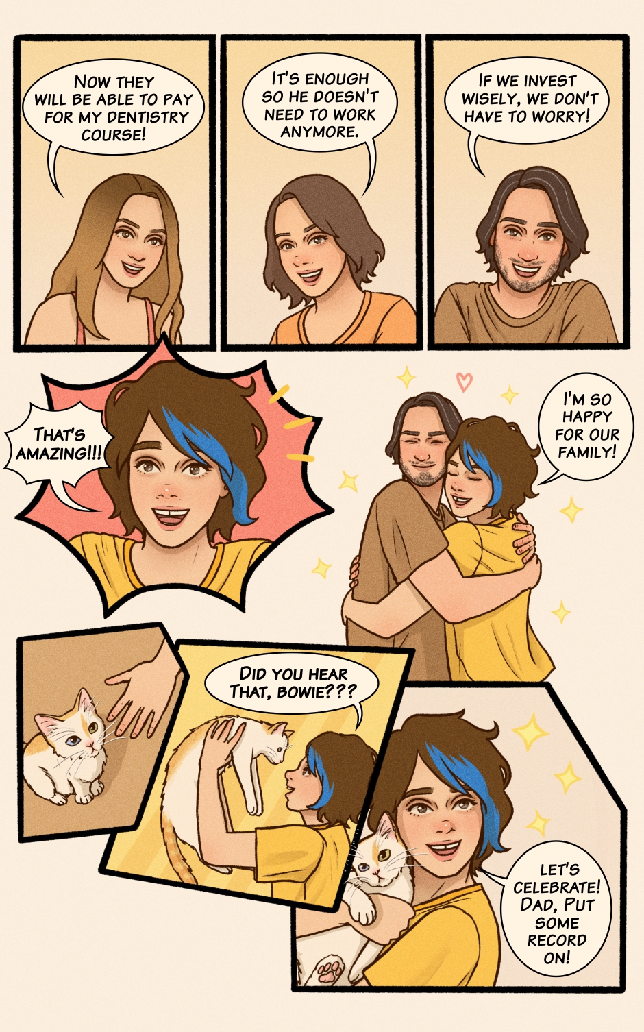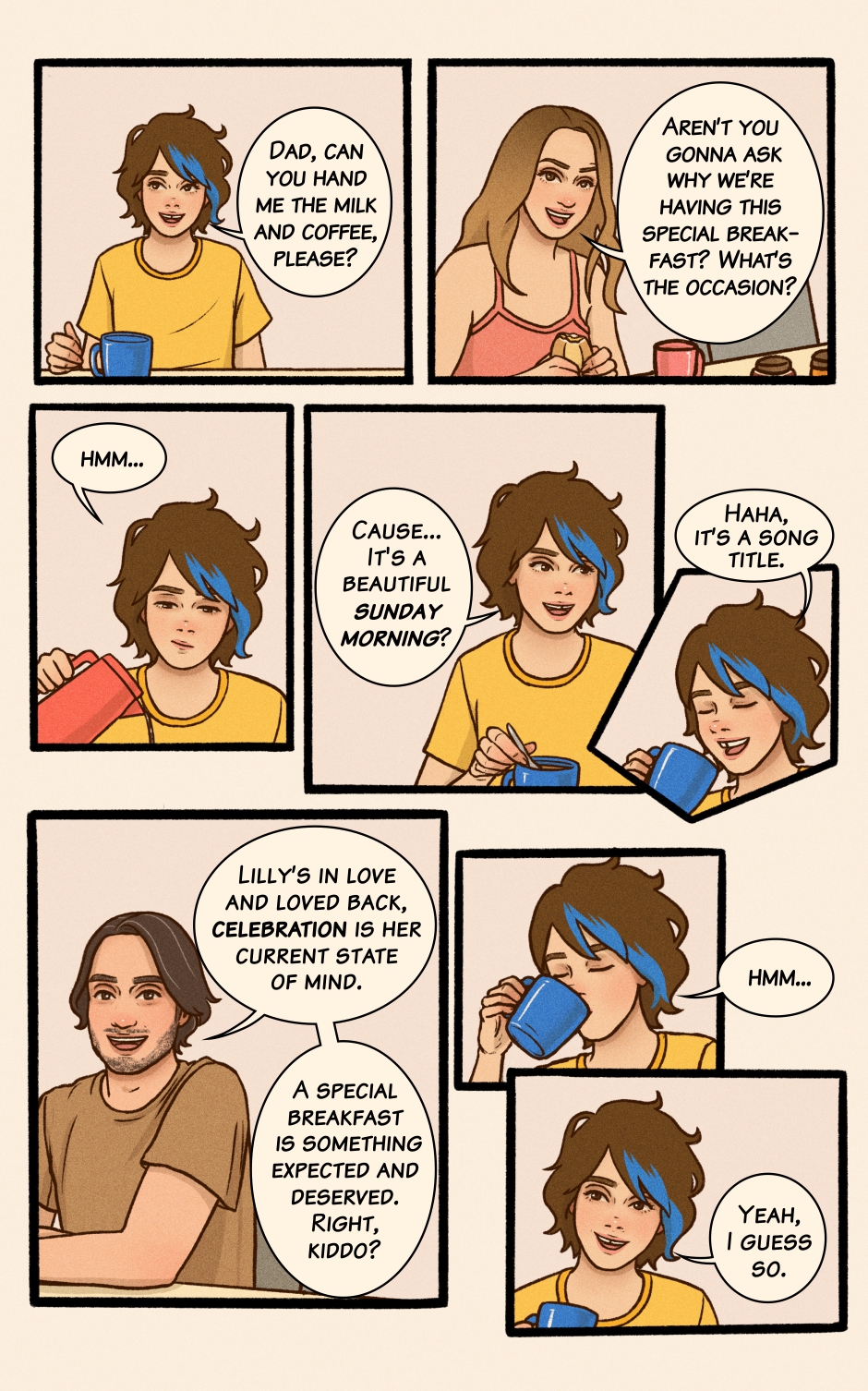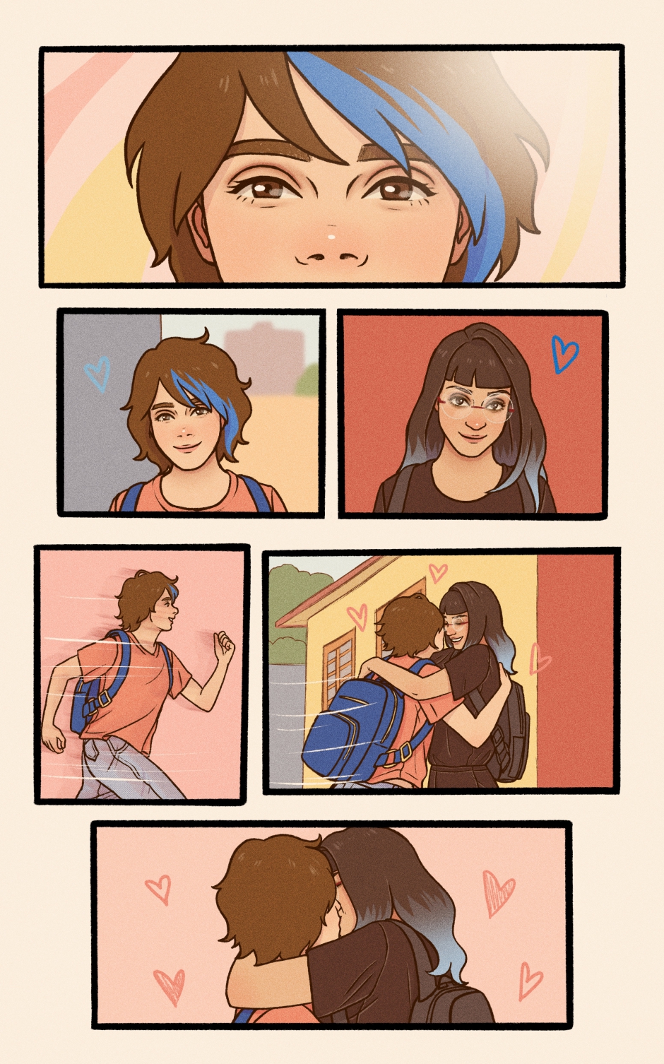 Lilly’s a fun and Lighthearted teen, living life to the beat of her favorite songs, filled with silly mishaps, cats, and joy. But when a girl with blue hair comes into the picture, her world suddenly bursts with new colors—and Lilly knows she has to find a way to get closer to her.