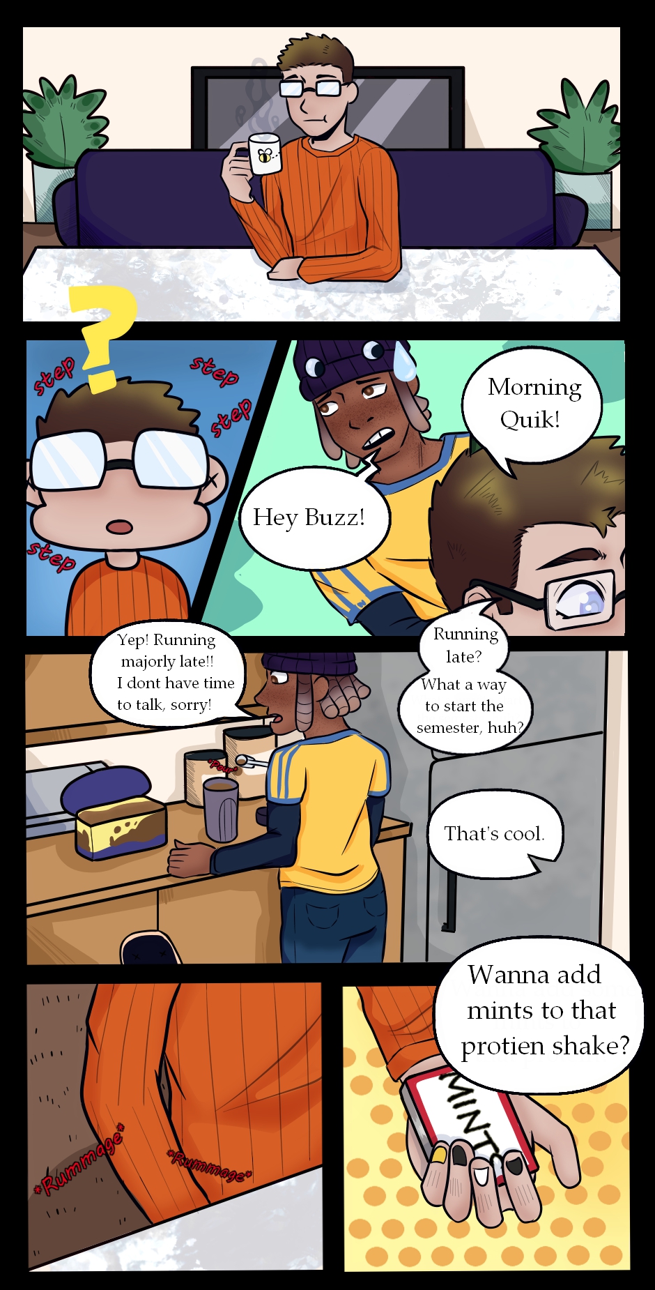 Quik’s life in college! His second year in college with his roommates and friends; Tanner, Diggy, Big E, and Buzz. A short slice of life comic in modern day, experiencing club activities, girls, summer jobs and a bunch of wacky shenanigans.