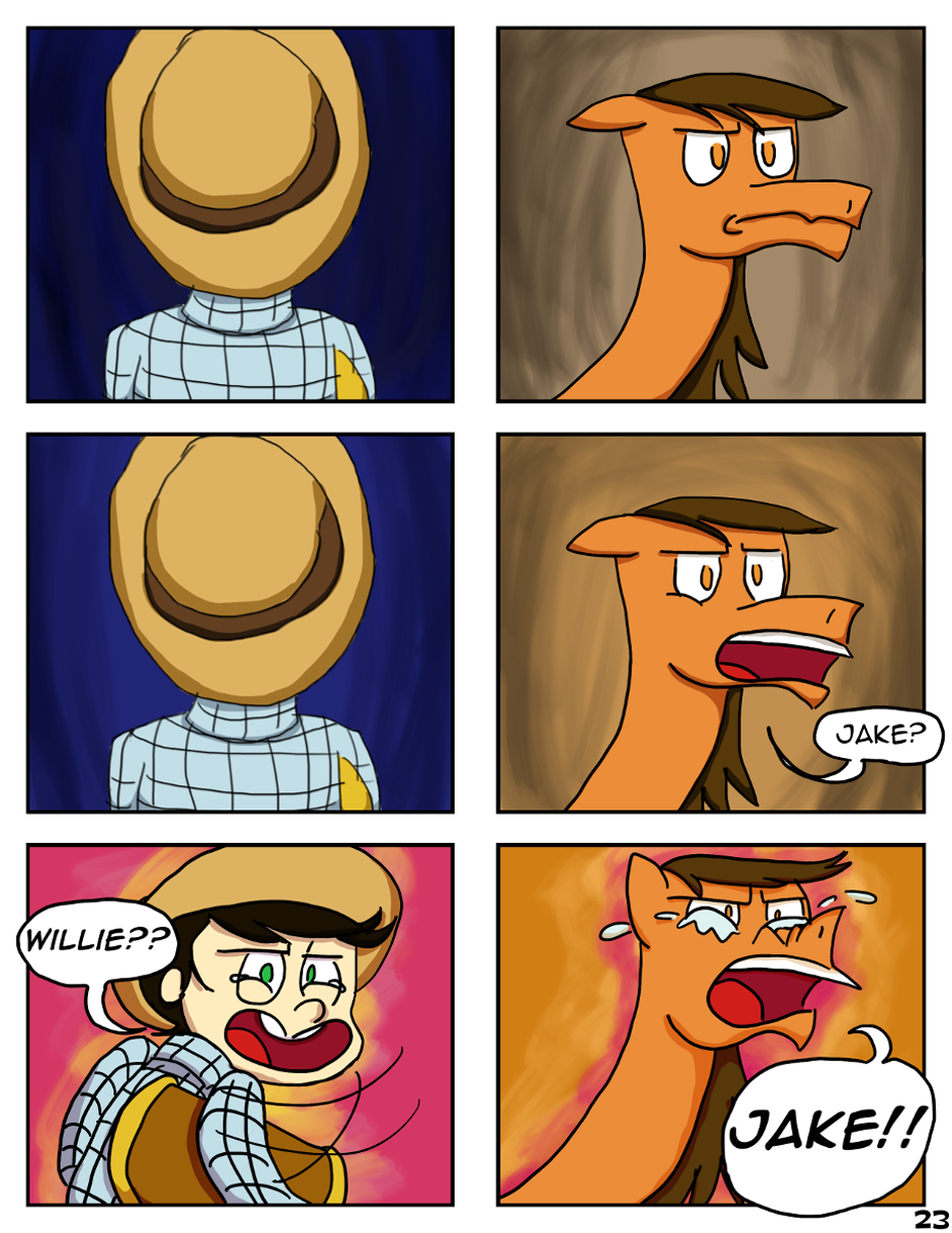Jake already has enough to worry about. Telegram prices are skyrocketing, he can't get a decent meal for 25 cents anymore, and he just got fired from his job, keeping him stuck in the nobody town of Peach Acres. On top of all that, he has a whole town's worth of trouble to worry about... At least he still has his horse. (DRAMA, COMEDY, ROMANCE) Updates Fridays!