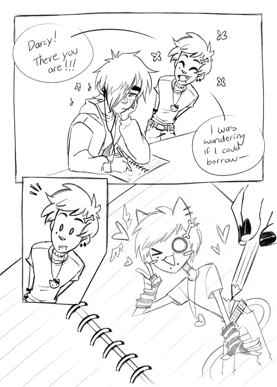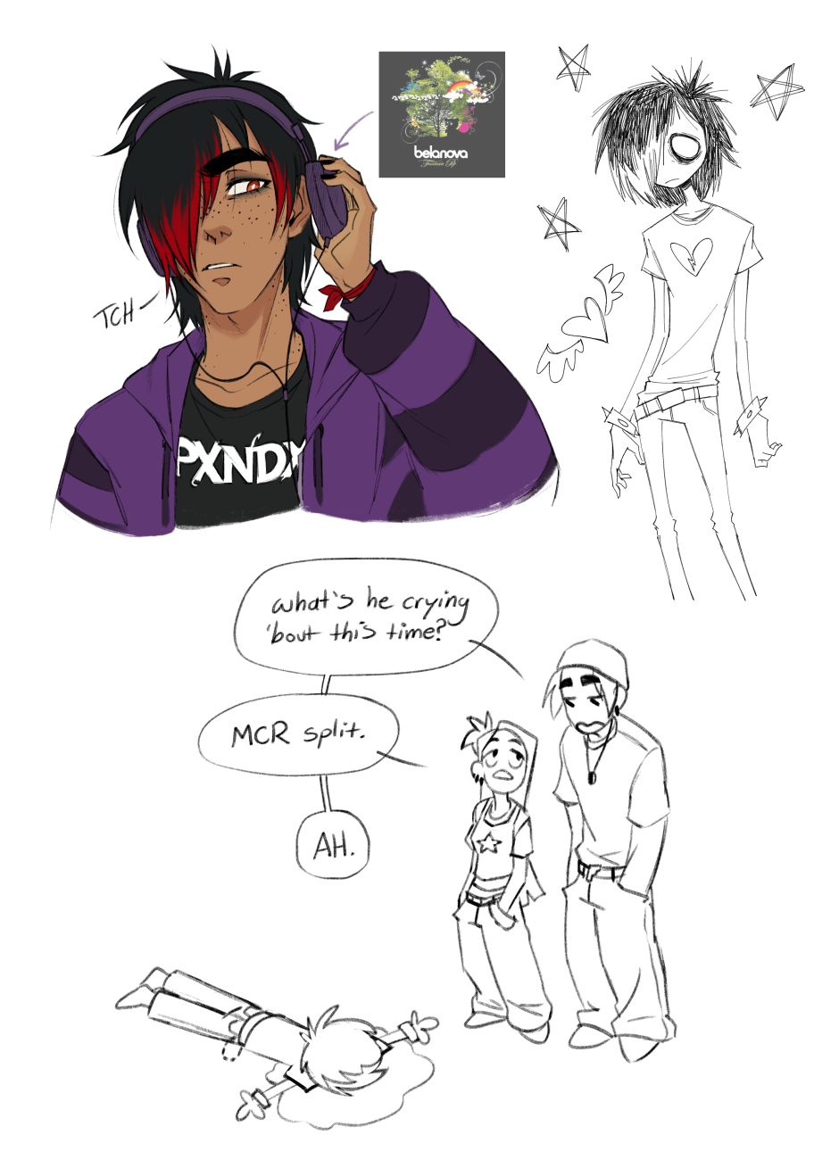 In honor of me surviving the mcr ticketmaster war last week, here's more 2000's emo Darcy (plus bonus scene Roman)!