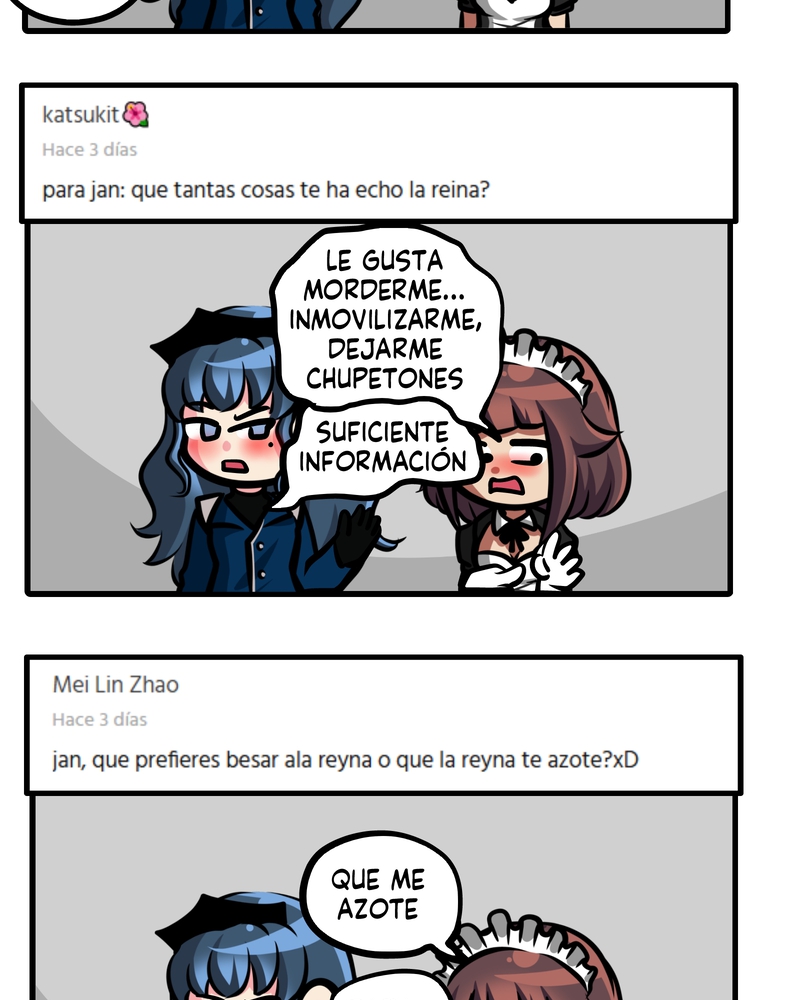 Las respuestas de Jan me sacaron más de una risa hahaha 🤣 Posdata: Muchas gracias🫶🏻 por considerar mi comentario, seguiré pendiente de la historia hasta su final ✨