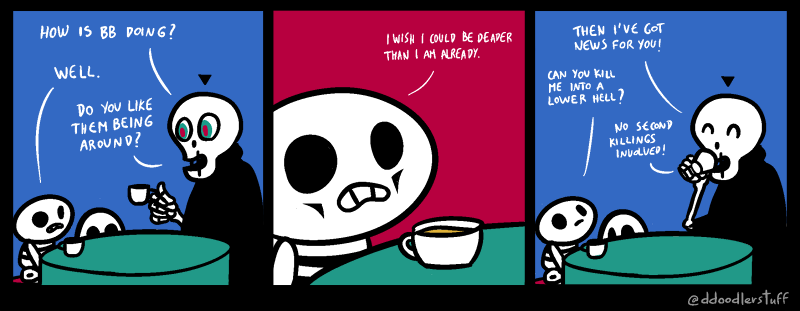 Note: Both Death and BB use they/them pronouns, as Death has no gender and BB, well... :^)