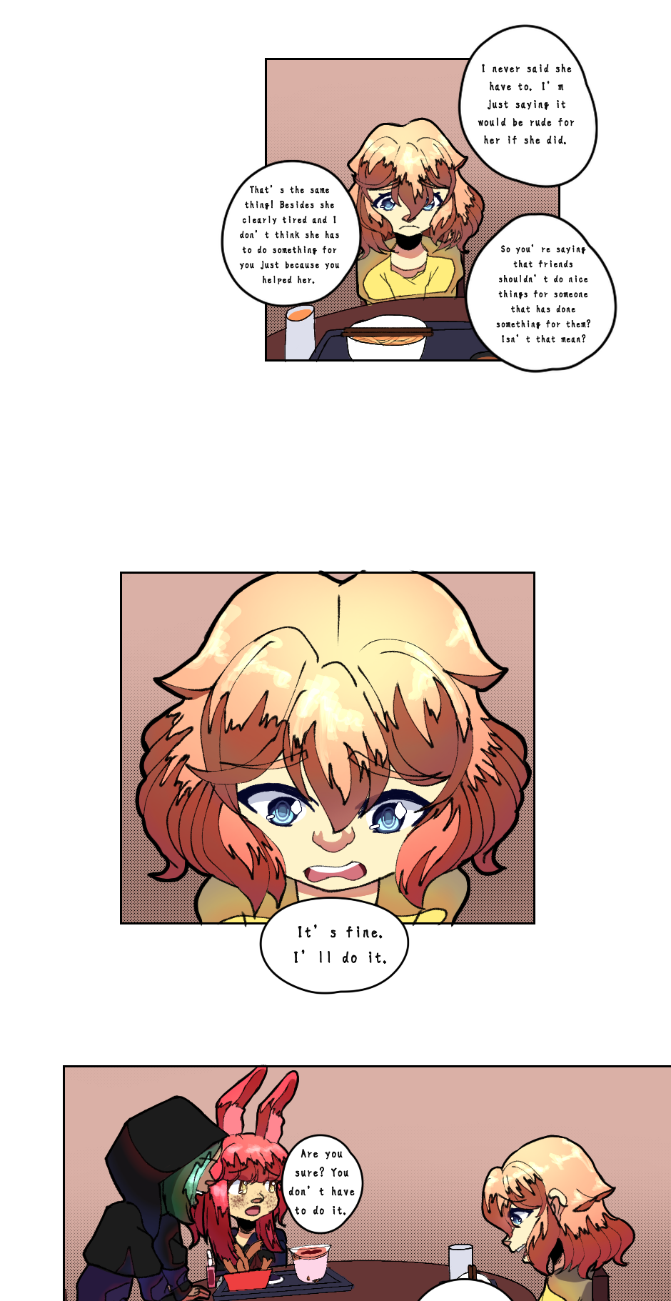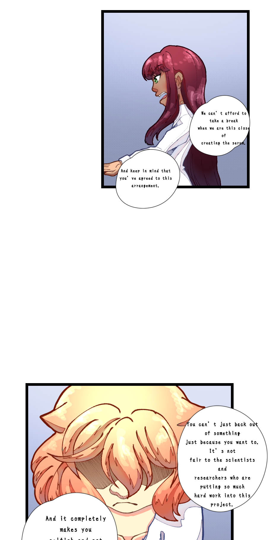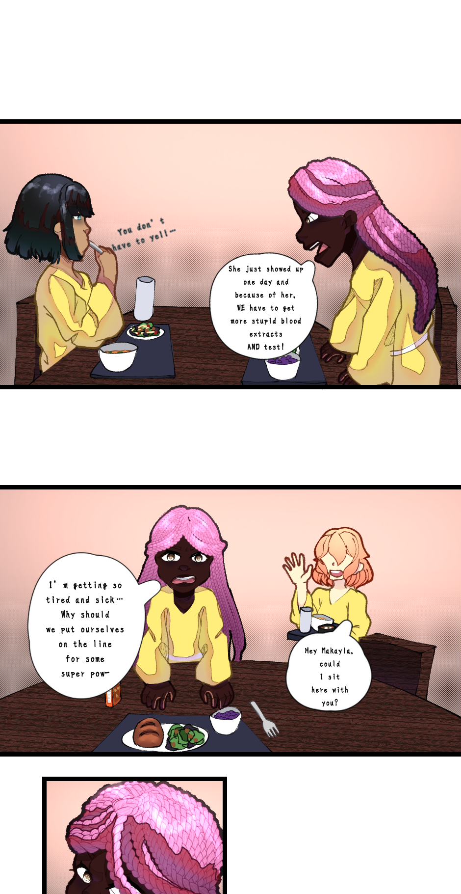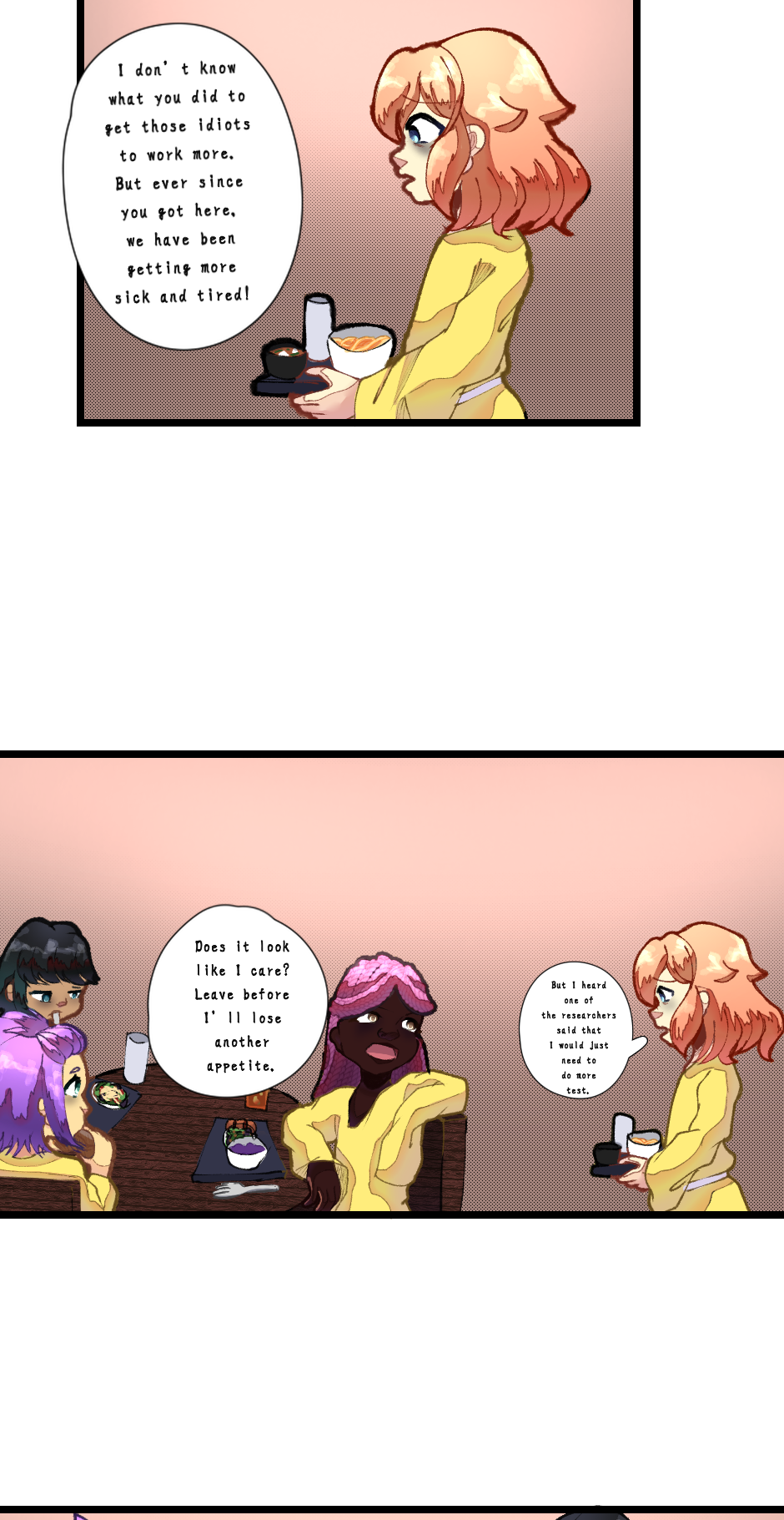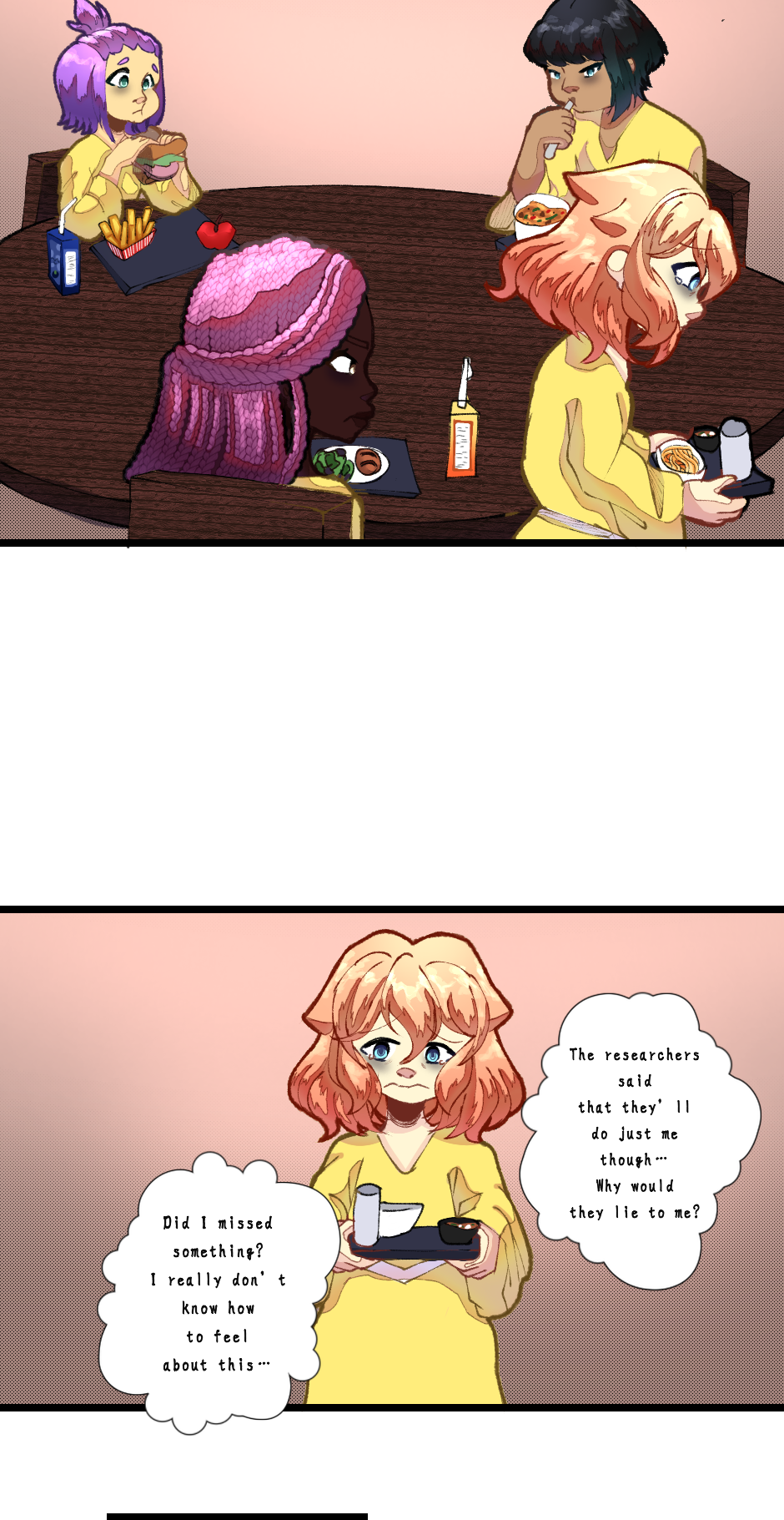Hello, everyone. I want to thank you all for being patient with me. I wanted to make sure I put into the best quality possible with the comic and I was also juggling school and such. So I hope you enjoy it.🩷 I will post the other parts. I realized I made the panels a bit too long for Tapas TuT